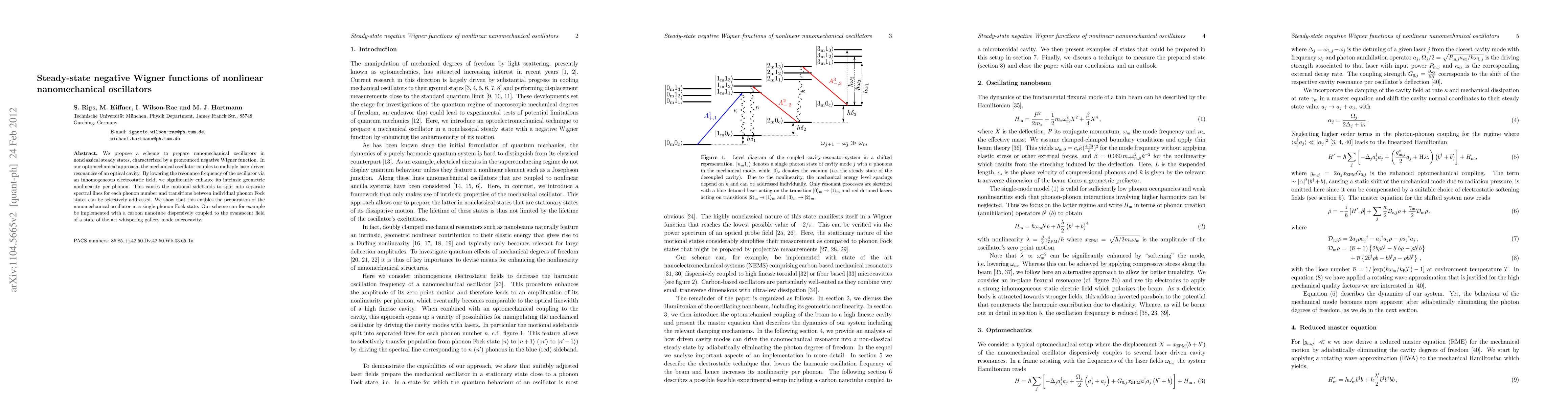 We propose a scheme to prepare nanomechanical oscillators in nonclassical steady states, characterized by a pronounced negative Wigner function. In our optomechanical approach, the mechanical oscillator couples to multiple laser driven resonances of an optical cavity. By lowering the resonance frequency of the oscillator via an inhomogeneous electrostatic field, we significantly enhance its intrinsic geometric nonlinearity per phonon. This causes the motional sidebands to split into separate spectral lines for each phonon number and transitions between individual phonon Fock states can be selectively addressed. We show that this enables the preparation of the nanomechanical oscillator in a single phonon Fock state. Our scheme can for example be implemented with a carbon nanotube dispersively coupled to the evanescent field of a state of the art whispering gallery mode microcavity.
