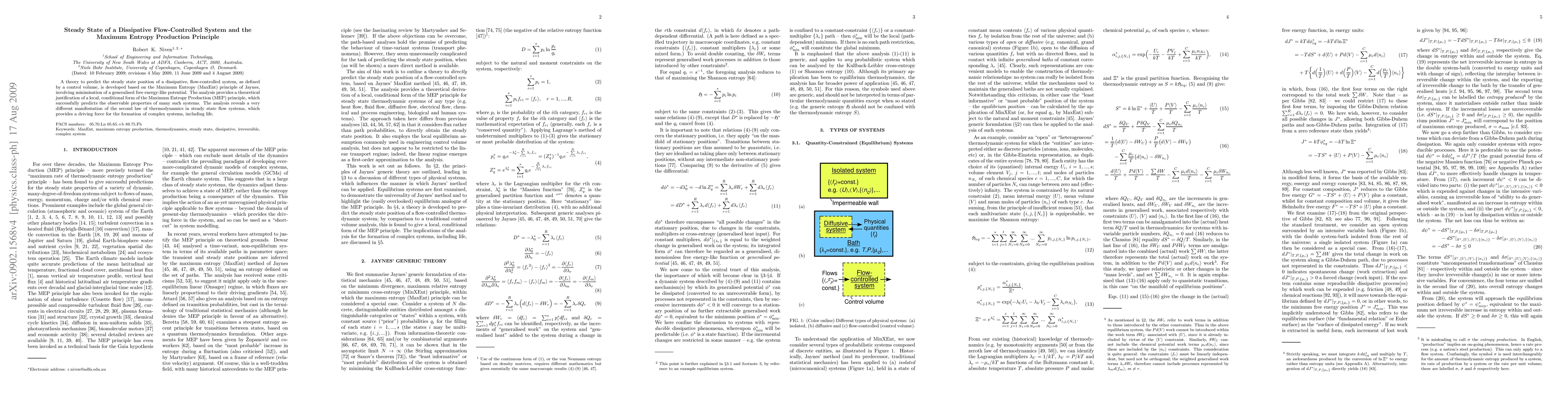 This paper develops a theory to predict the steady state of dissipative, flow-controlled systems using the Maximum Entropy principle, providing a local conditional form of the Maximum Entropy Production principle. The analysis reveals a unique thermodynamic driving force for the formation of complex systems, including life.