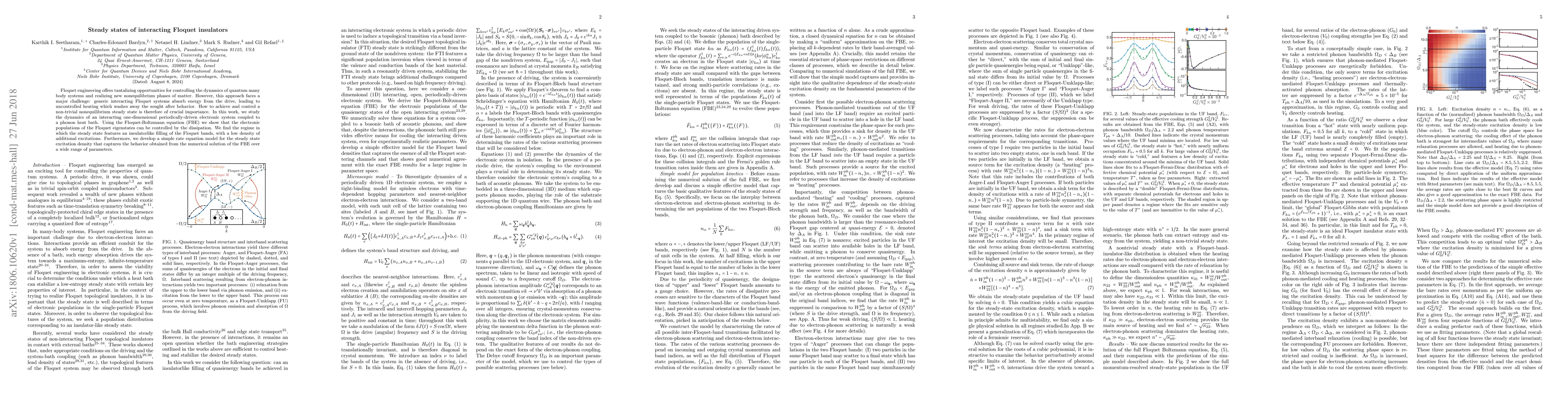 This paper investigates the dynamics of an interacting one-dimensional periodically-driven electronic system coupled to a phonon heat bath, demonstrating how dissipation can control the electronic populations of Floquet eigenstates. The study reveals a regime where the steady state exhibits an insulatorlike filling of Floquet bands with minimal excitations, and introduces a rate equation model that accurately describes the steady state excitation density.