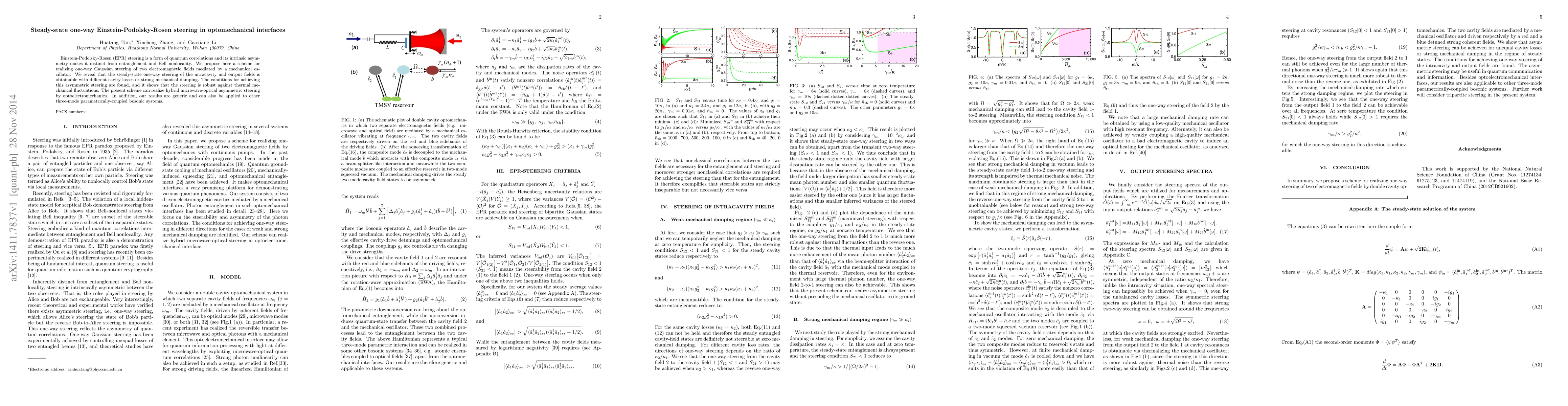 This paper proposes a scheme for achieving steady-state one-way Einstein-Podolsky-Rosen steering in optomechanical interfaces using a mechanical oscillator to mediate correlations between electromagnetic fields. The study finds conditions under which this asymmetric steering is robust against thermal fluctuations and applicable to various parametrically-coupled bosonic systems.