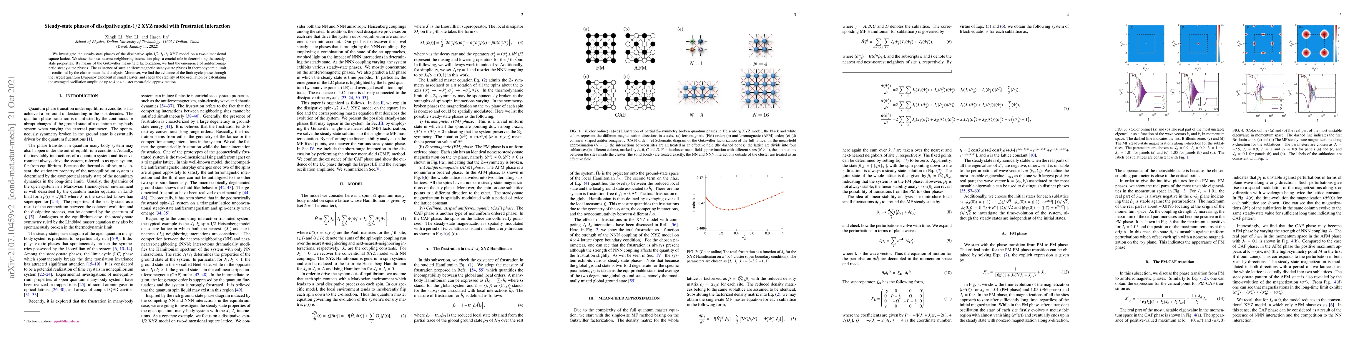 Researchers investigate steady-state phases of a spin model with frustrated interactions, finding evidence of antiferromagnetic phases and a limit cycle phase, which they confirm through mean-field analysis.