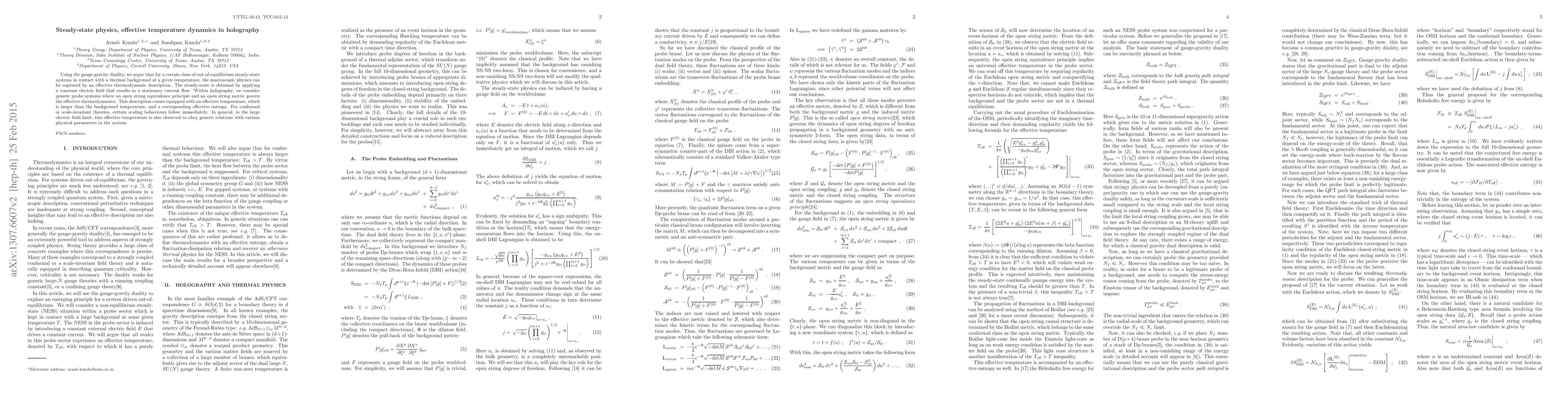 Using the gauge-gravity duality, we argue that for a certain class of out-of-equilibrium steady-state systems in contact with a thermal background at a given temperature, the macroscopic physics can be captured by an effective thermodynamic description. The steady-state is obtained by applying a constant electric field that results in a stationary current flow. Within holography, we consider generic probe systems where an open string equivalence principle and an open string metric govern the effective thermodynamics. This description comes equipped with an effective temperature, which is larger than the background temperature, and a corresponding effective entropy. For conformal or scale-invariant theories, certain scaling behaviours follow immediately. In general, in the large electric field limit, this effective temperature is also observed to obey generic relations with various physical parameters in the system.