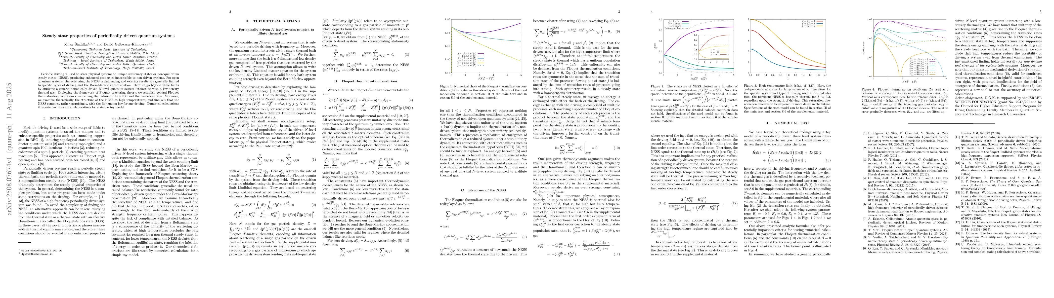 Periodic driving is used to steer physical systems to unique stationary states or nonequilibrium steady states (NESS), producing enhanced properties inaccessible to non-driven systems. For open quantum systems, characterizing the NESS is challenging and existing results are generally limited to specific types of driving and the Born-Markov approximation. Here we go beyond these limits by studying a generic periodically driven $ N$-level quantum system interacting with a low-density thermal gas. Exploiting the framework of Floquet scattering theory, we establish general Floquet thermalization conditions constraining the nature of the NESS and the transition rates. Moreover, we examine theoretically the structure of the NESS at high temperatures, and find out that the NESS complies, rather surprisingly, with the Boltzmann law for any driving. Numerical calculations illustrate our theoretical elaborations for a simple toy model.