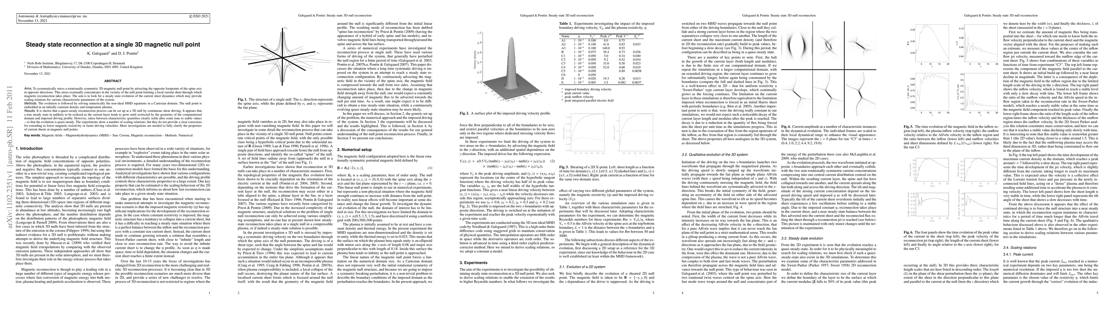This paper investigates the dynamics of steady state reconnection at a 3D magnetic null point through numerical simulations of non-ideal MHD equations. It finds that while a true steady state is unlikely, a quasi-steady reconnection process emerges with stable ratios between characteristic parameters, though scaling relations remain unclear.