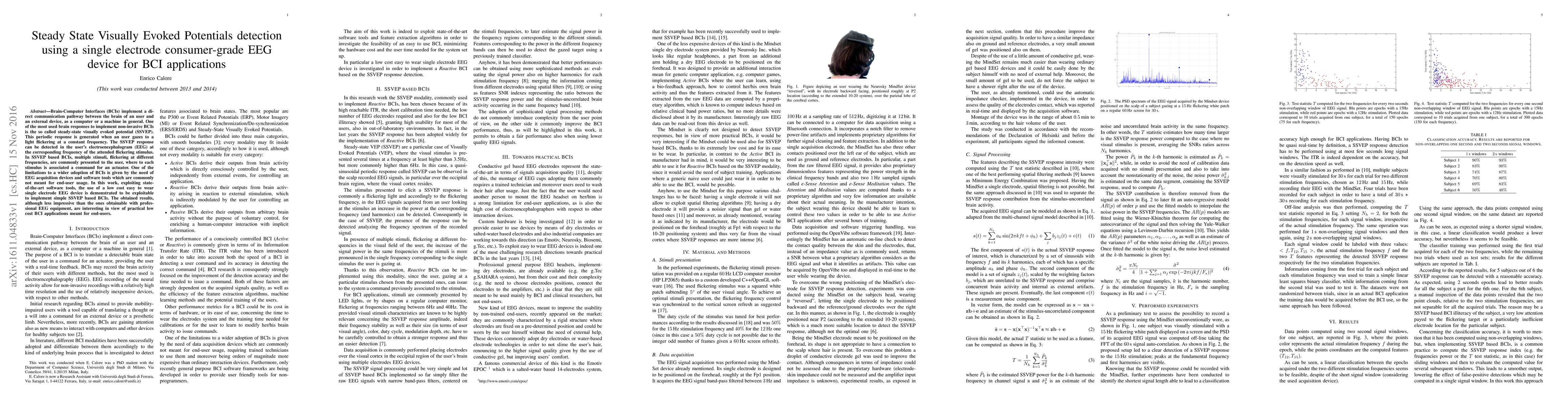 This paper demonstrates the feasibility of using a low-cost, single-electrode consumer-grade EEG device to detect steady-state visually evoked potentials (SSVEPs) for Brain-Computer Interface (BCI) applications, showing practical potential for affordable end-user BCI solutions despite lower performance compared to professional equipment.