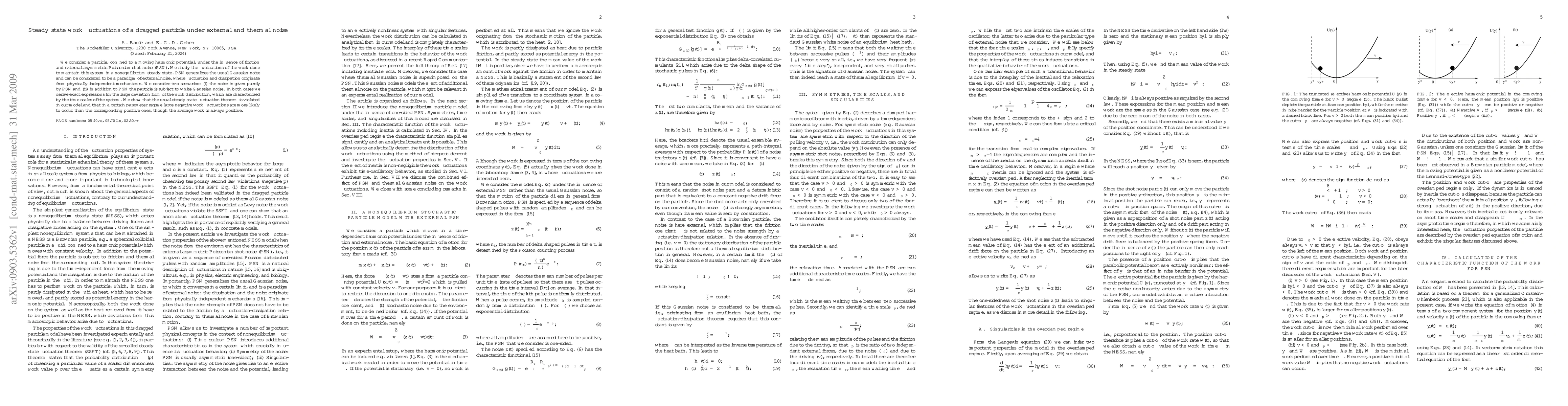 We consider a particle, confined to a moving harmonic potential, under the influence of friction and external asymmetric Poissonian shot noise (PSN). We study the fluctuations of the work done to maintain this system in a nonequilibrium steady state. PSN generalizes the usual Gaussian noise and can be considered to be a paradigm of external noise, where fluctuation and dissipation originate from physically independent mechanisms. We consider two scenarios: (i) the noise is given purely by PSN and (ii) in addition to PSN the particle is subject to white Gaussian noise. In both cases we derive exact expressions for the large deviation form of the work distribution, which are characterized by the time scales of the system. We show that the usual steady state fluctuation theorem is violated in our model and that in a certain parameter regime large negative work fluctuations are more likely to occur than the corresponding positive ones, though the average work is always positive.
