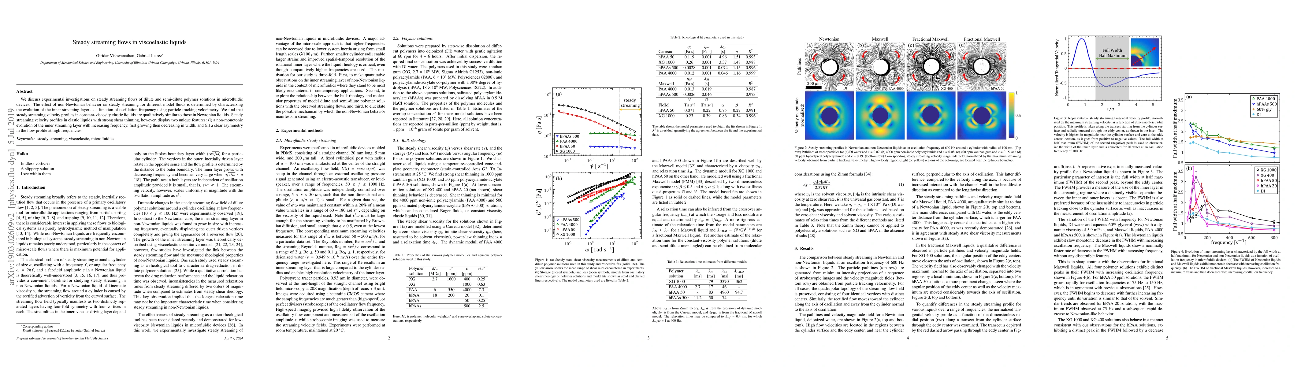 Researchers investigated steady streaming flows in viscoelastic liquids, finding that elastic liquids with strong shear thinning exhibit unique features like non-monotonic inner layer evolution and asymmetry at high frequencies.