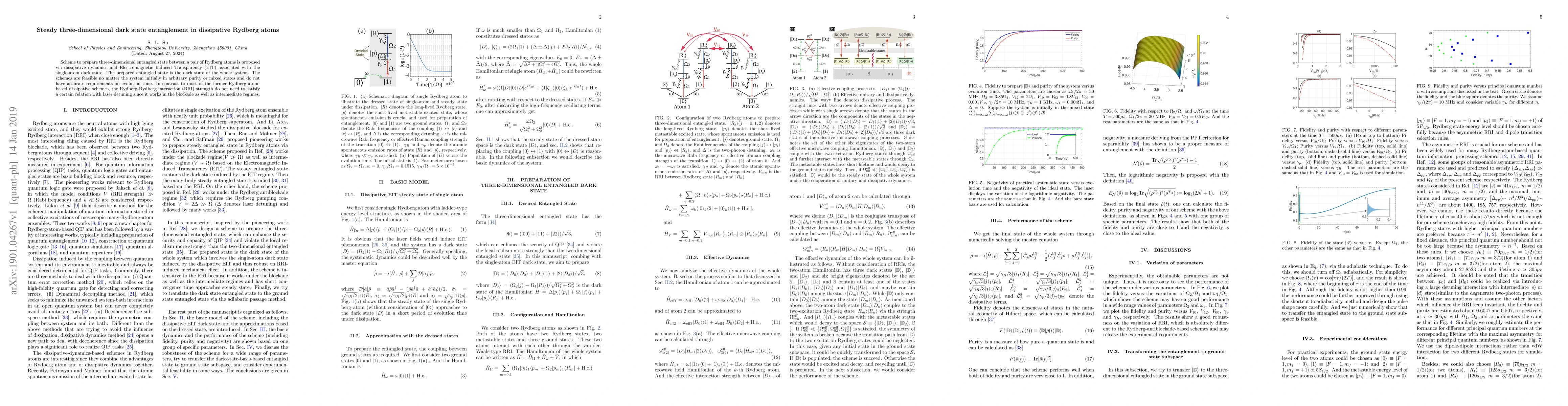 This paper proposes a method to create a steady three-dimensional entangled state between Rydberg atoms using dissipative dynamics and Electromagnetic Induced Transparency (EIT) in the single-atom dark state. The scheme is adaptable to any initial state purity and does not require precise control over evolution time or specific Rydberg-Rydberg interaction conditions.