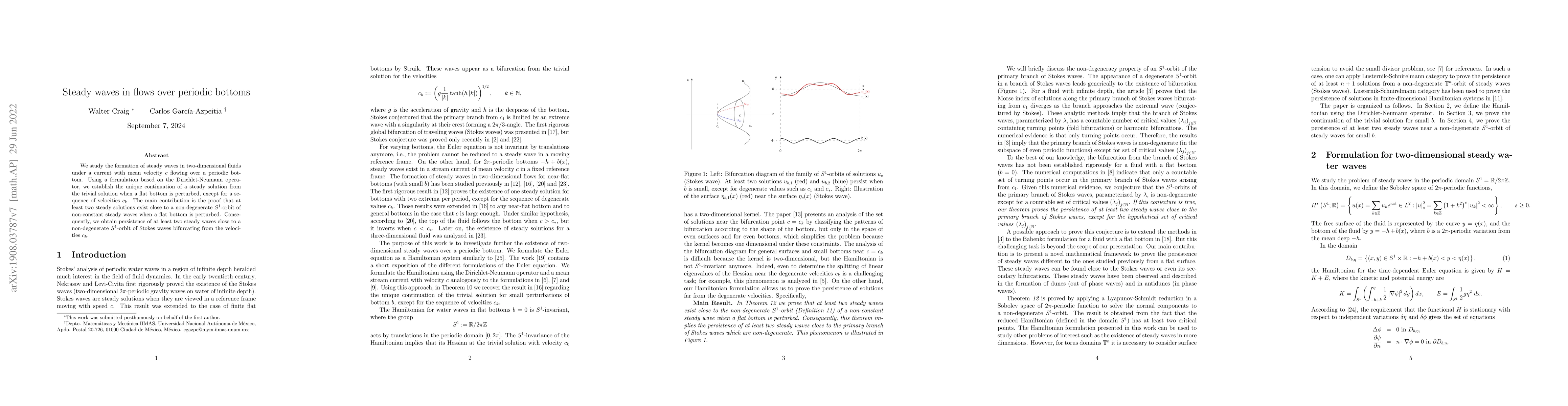 The paper presents a novel approach using the Dirichlet-Neumann operator to analyze steady wave formation, providing a rigorous proof of existence and continuation of solutions near non-degenerate S¹-orbits.