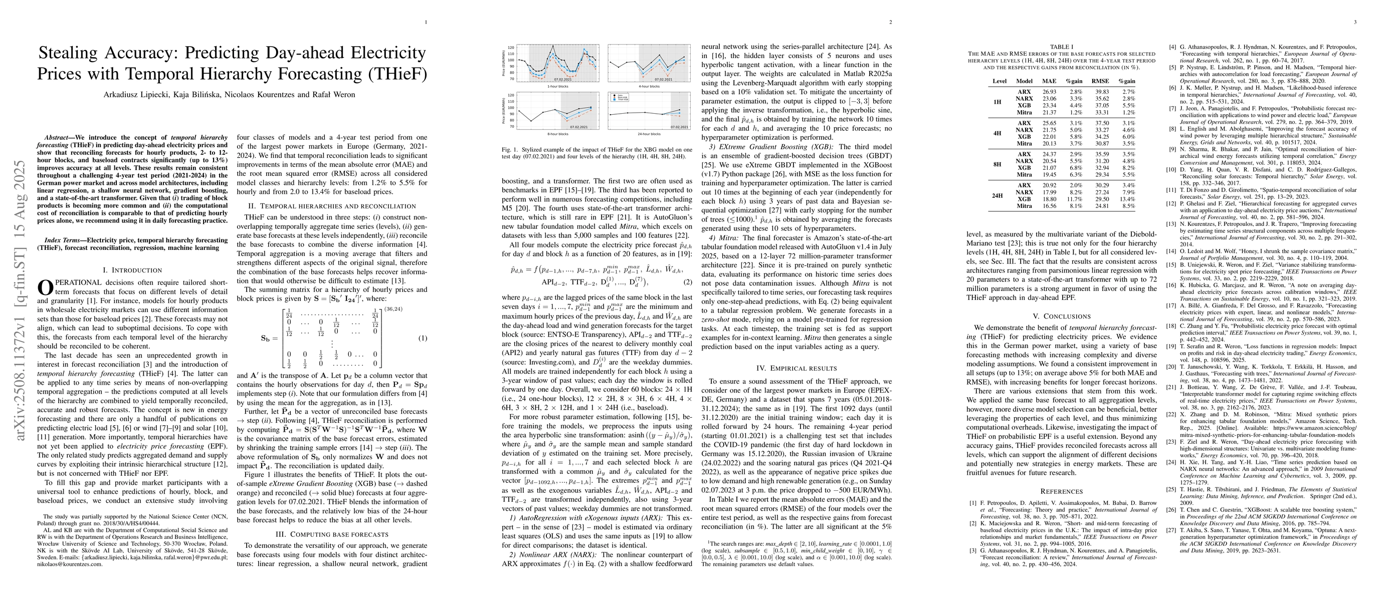 We introduce the concept of temporal hierarchy forecasting (THieF) in predicting day-ahead electricity prices and show that reconciling forecasts for hourly products, 2- to 12-hour blocks, and baseload contracts significantly (up to 13%) improves accuracy at all levels. These results remain consistent throughout a challenging 4-year test period (2021-2024) in the German power market and across model architectures, including linear regression, a shallow neural network, gradient boosting, and a state-of-the-art transformer. Given that (i) trading of block products is becoming more common and (ii) the computational cost of reconciliation is comparable to that of predicting hourly prices alone, we recommend using it in daily forecasting practice.