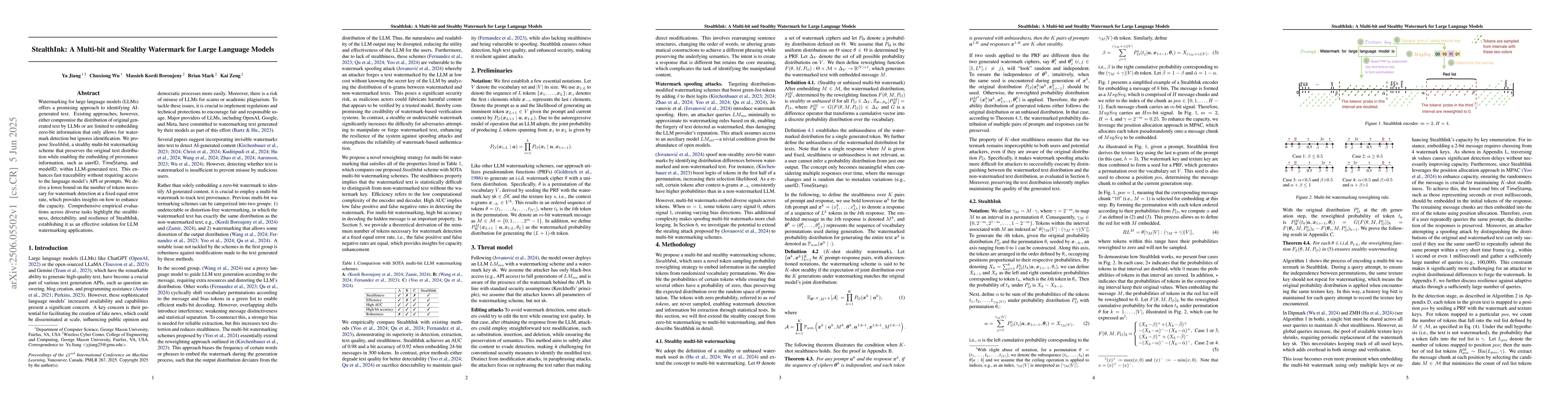 StealthInk is a stealthy multi-bit watermarking scheme that preserves original text distribution while embedding provenance data in LLM-generated text, enabling fast traceability without API access.