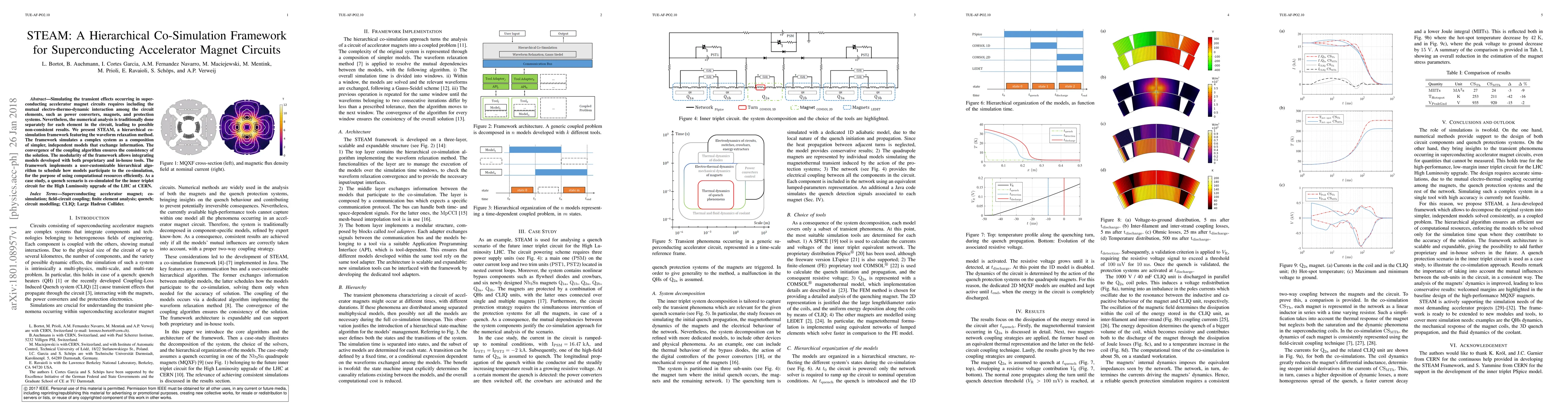 STEAM is a hierarchical co-simulation framework designed to accurately model the transient effects in superconducting accelerator magnet circuits by integrating electro-thermo-dynamic interactions. It employs a waveform relaxation method to ensure consistent results across different circuit elements, demonstrating its efficiency through a case study of the LHC's High Luminosity upgrade.