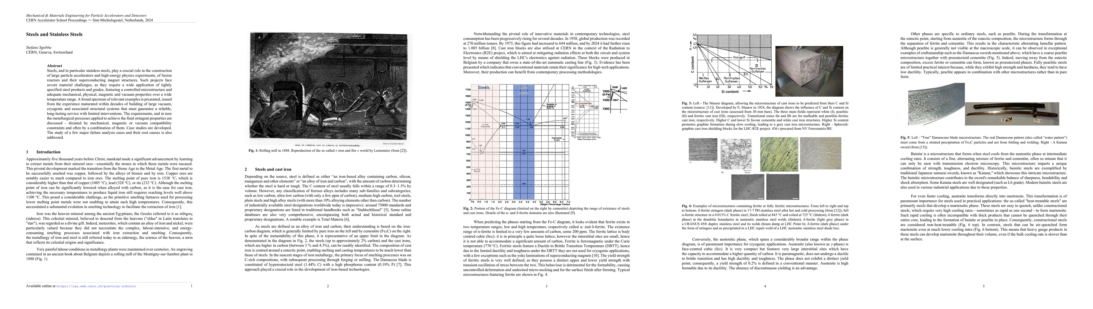 Steels, and in particular stainless steels, play a crucial role in the construction of large particle accelerators and high-energy physics experiments, of fusion reactors and their superconducting magnet structures. Such projects face severe material challenges, as they require a wide application of tightly specified steel products and grades, featuring a controlled microstructure and adequate mechanical, physical, magnetic and vacuum properties over a wide temperature range. A broad spectrum of relevant examples is presented, issued from the experience maturated within decades of building of large vacuum, cryogenic and associated structural systems that must guarantee a reliable, long-lasting service with limited interventions. The requirements, and in turn the metallurgical processes applied to achieve the final stringent properties are discussed - dictated by mechanical, magnetic or vacuum compatibility constraints and often by a combination of them. Case studies are developed. The study of a few major failure analysis cases and their root causes is also addressed.