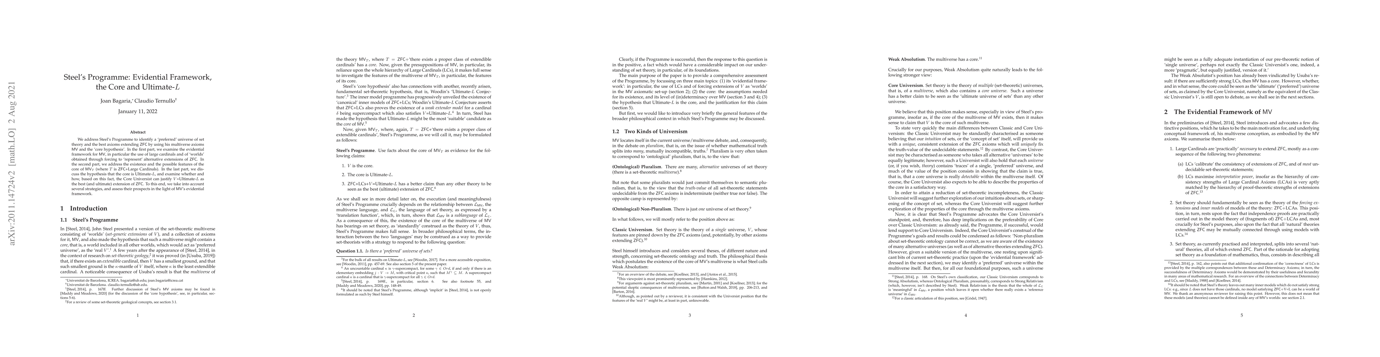 This research paper explores Steel's Programme to identify a preferred universe of set theory and the best axioms extending ZFC using multiverse axioms MV and the core hypothesis. It examines the existence and features of the core of MV_T and its implications for the Core Universist hypothesis that V=Ultimate-L is the best extension of ZFC.