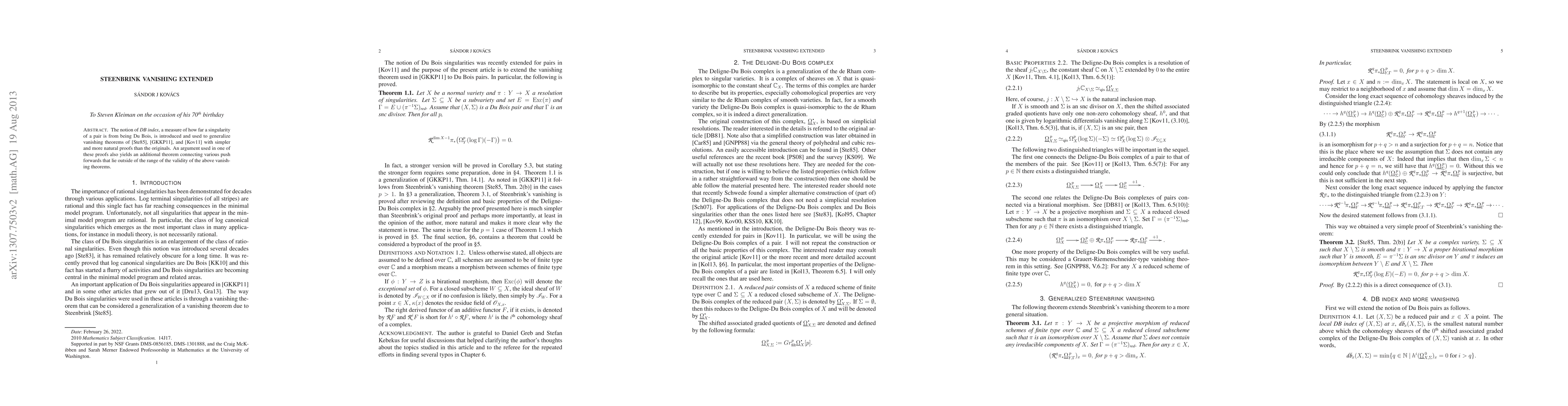 Summary: This paper introduces the concept of DB index to generalize Steenbrink's vanishing theorems, providing simpler and more natural proofs for these results compared to the original formulations.