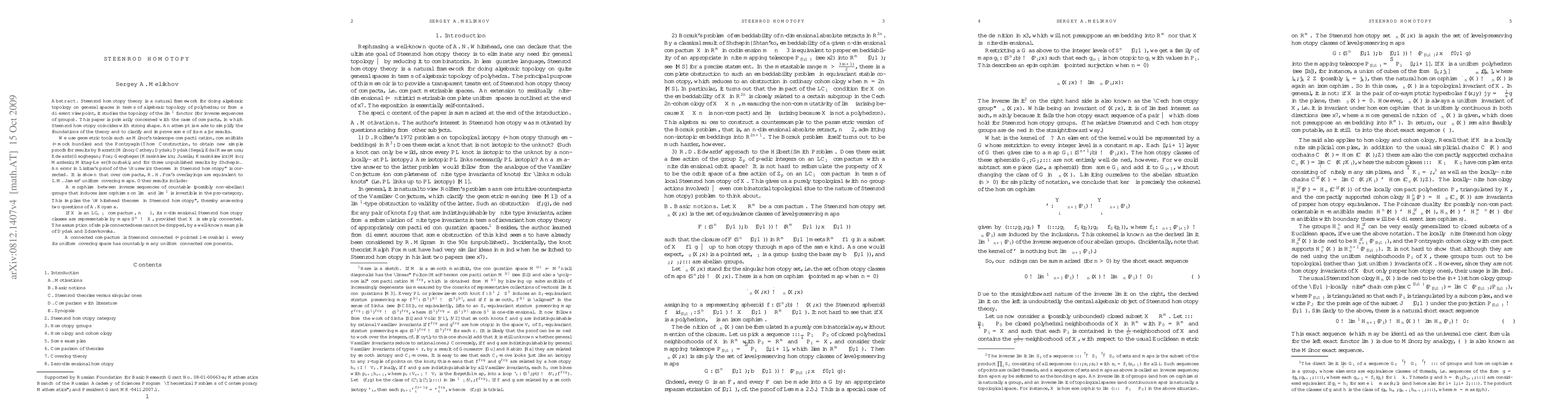 Steenrod homotopy theory is a framework for doing algebraic topology on general spaces in terms of algebraic topology of polyhedra; from another viewpoint, it studies the topology of the lim^1 functor (for inverse sequences of groups). This paper is primarily concerned with the case of compacta, in which Steenrod homotopy coincides with strong shape. We attempt to simplify foundations of the theory and to clarify and improve some of its major results. Using geometric tools such as Milnor's telescope compactification, comanifolds (=mock bundles) and the Pontryagin-Thom Construction, we obtain new simple proofs of results by Barratt-Milnor; Cathey; Dydak-Segal; Eda-Kawamura; Edwards-Geoghegan; Fox; Geoghegan-Krasinkiewicz; Jussila; Krasinkiewicz-Minc; Mardesic; Mittag-Leffler/Bourbaki; and of three unpublished results by Shchepin. An error in Lisitsa's proof of the "Hurewicz theorem in Steenrod homotopy" is corrected. It is shown that over compacta, R.H.Fox's overlayings are same as I.M.James' uniform covering maps. Other results include: - A morphism between inverse sequences of countable (possibly non-abelian) groups that induces isomorphisms on inverse and derived limits is invertible in the pro-category. This implies the "Whitehead theorem in Steenrod homotopy", thereby answering two questions of A.Koyama. - If X is an LC_{n-1} compactum, n>0, its n-dimensional Steenrod homotopy classes are representable by maps S^n\to X, provided that X is simply connected. The assumption of simply-connectedness cannot be dropped by a well-known example of Dydak and Zdravkovska. - A connected compactum is Steenrod connected (=pointed 1-movable) iff every its uniform covering space has countably many uniform connected components.