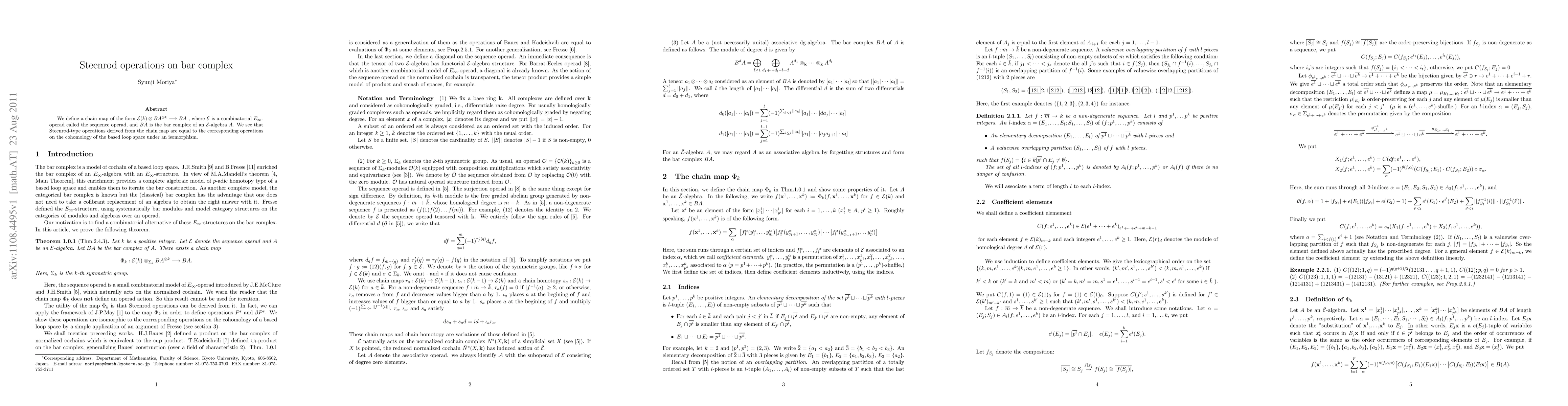 This paper defines a chain map involving the sequence operad and the bar complex of an $\E$-algebra, showing that Steenrod operations derived from this map correspond to operations on the cohomology of the based loop space.