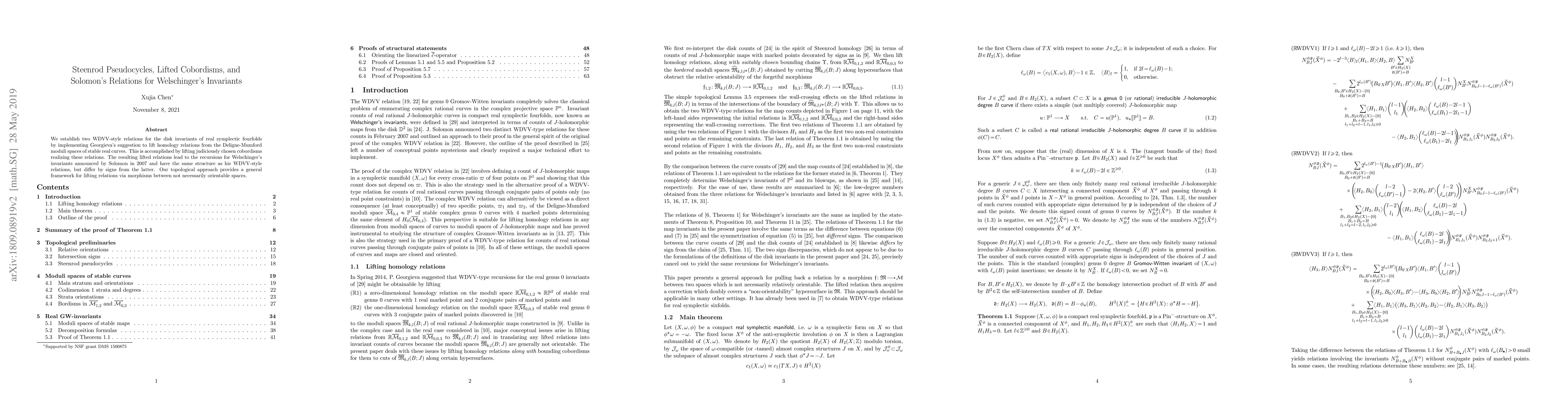 We establish two WDVV-style relations for the disk invariants of real symplectic fourfolds by implementing Georgieva's suggestion to lift homology relations from the Deligne-Mumford moduli spaces of stable real curves. This is accomplished by lifting judiciously chosen cobordisms realizing these relations. The resulting lifted relations lead to the recursions for Welschinger's invariants announced by Solomon in~2007 and have the same structure as his WDVV-style relations, but differ by signs from the latter. Our topological approach provides a general framework for lifting relations via morphisms between not necessarily orientable spaces.