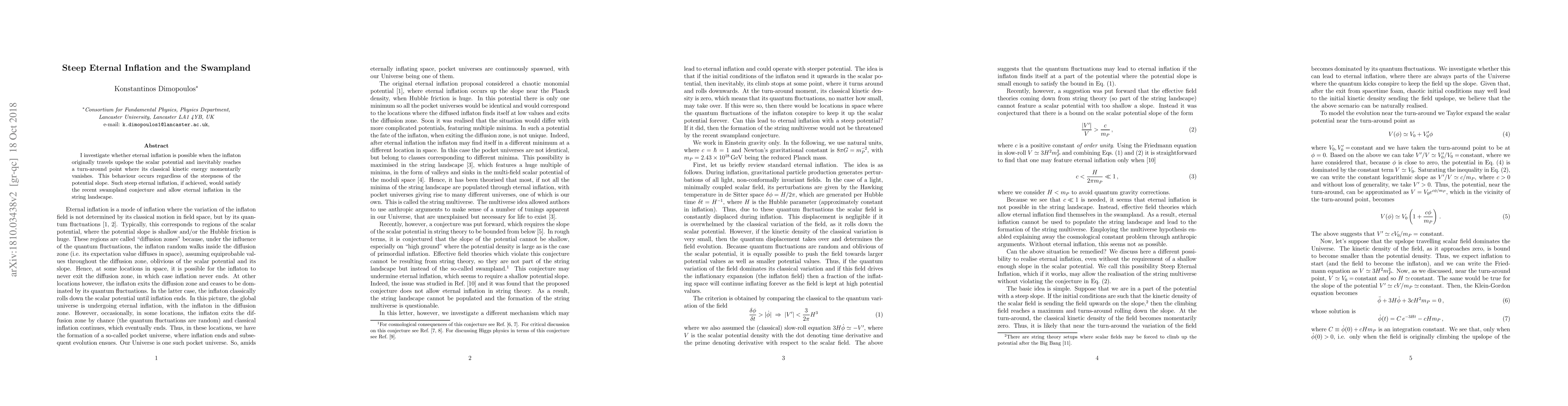 I investigate whether eternal inflation is possible when the inflaton originally travels upslope the scalar potential and inevitably reaches a turn-around point where its classical kinetic energy momentarily vanishes. This behaviour occurs regardless of the steepness of the potential slope. Such steep eternal inflation, if achieved, would satisfy the recent swampland conjecture and allow eternal inflation in the string landscape.