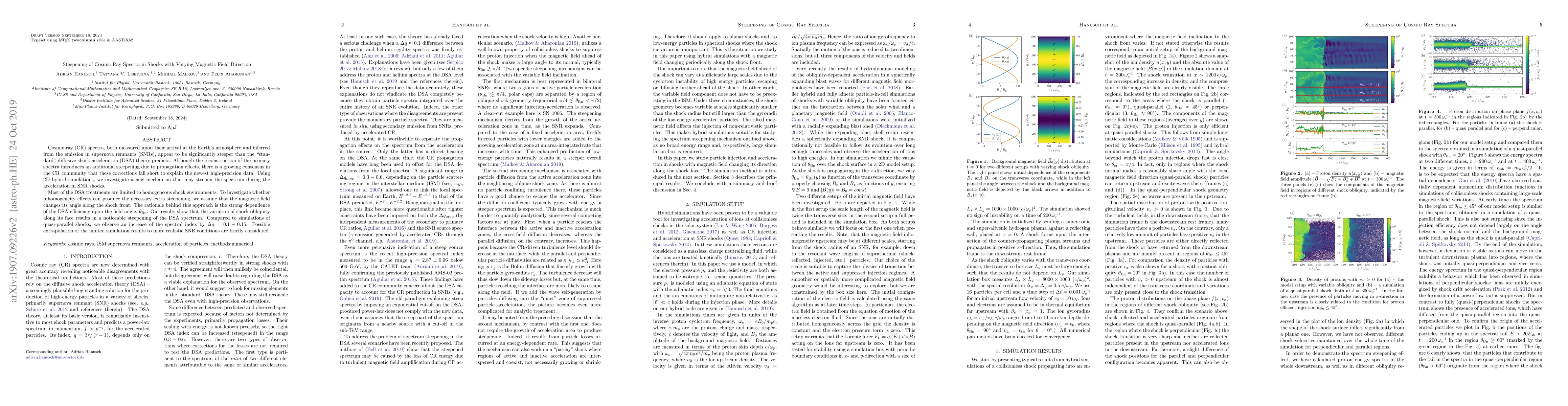 This study uses 2D hybrid simulations to show that varying magnetic field directions in supernova remnant shocks can steepen cosmic ray spectra beyond what standard diffusive shock acceleration theory predicts, increasing the spectral index by 0.1-0.15 compared to quasi-parallel shocks.