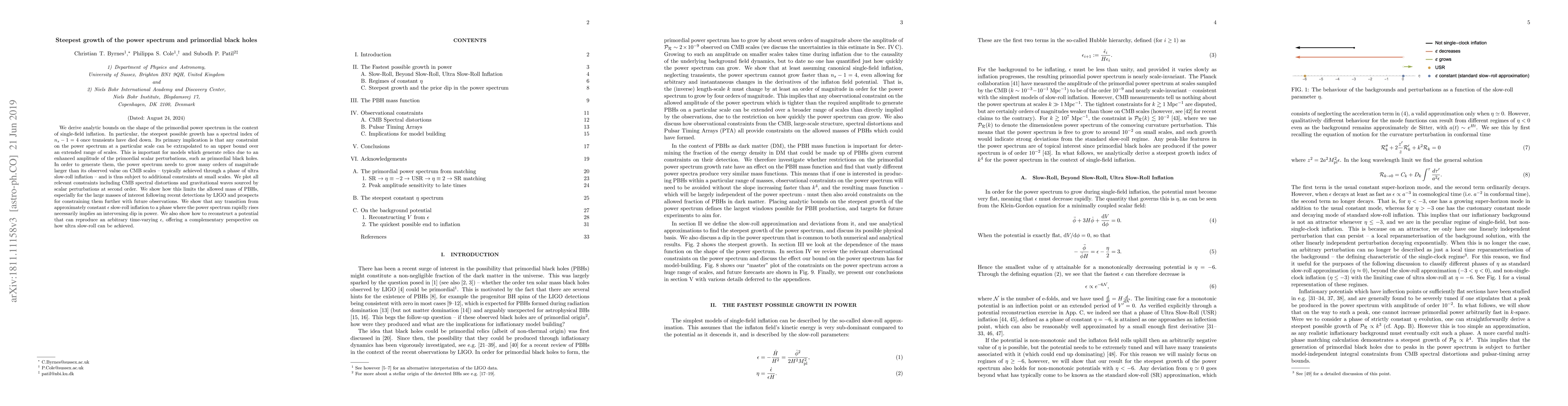 We derive analytic bounds on the shape of the primordial power spectrum in the context of single-field inflation. In particular, the steepest possible growth has a spectral index of $n_s - 1 = 4$ once transients have died down. Its primary implication is that any constraint on the power spectrum at a particular scale can be extrapolated to an upper bound over an extended range of scales. This is important for models which generate relics due to an enhanced amplitude of the primordial scalar perturbations, such as primordial black holes. In order to generate them, the power spectrum needs to grow many orders of magnitude larger than its observed value on CMB scales - typically achieved through a phase of ultra slow-roll inflation - and is thus subject to additional constraints at small scales. We plot all relevant constraints including CMB spectral distortions and gravitational waves sourced by scalar perturbations at second order. We show how this limits the allowed mass of PBHs, especially for the large masses of interest following recent detections by LIGO and prospects for constraining them further with future observations. We show that any transition from approximately constant $\epsilon$ slow-roll inflation to a phase where the power spectrum rapidly rises necessarily implies an intervening dip in power. We also show how to reconstruct a potential that can reproduce an arbitrary time-varying $\epsilon$, offering a complementary perspective on how ultra slow-roll can be achieved.