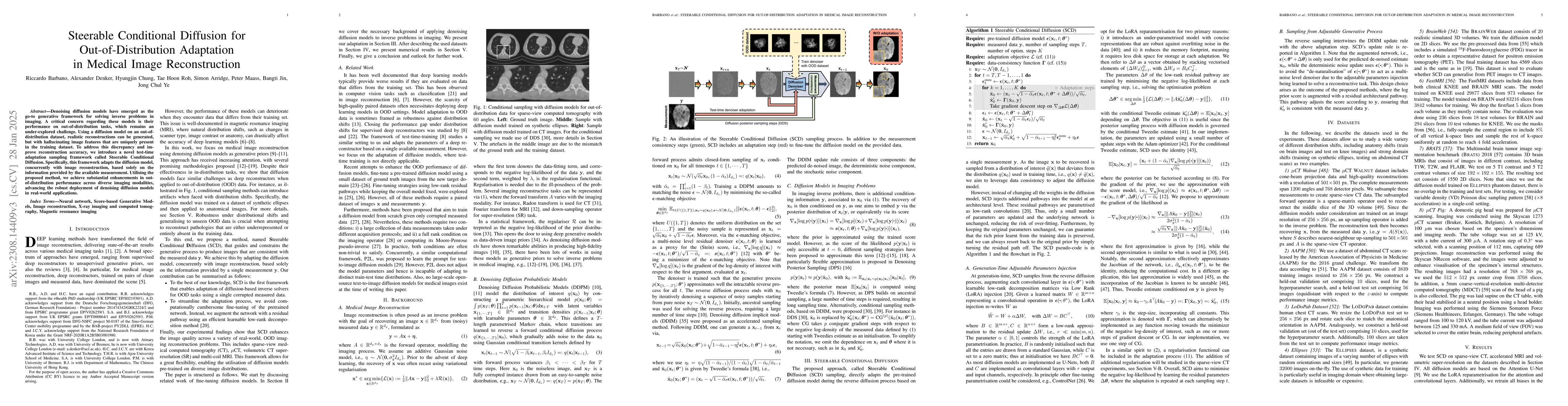 This paper introduces Steerable Conditional Diffusion, a novel framework that adapts denoising diffusion models to improve performance on out-of-distribution tasks in imaging inverse problems, achieving significant enhancements in handling diverse imaging modalities.