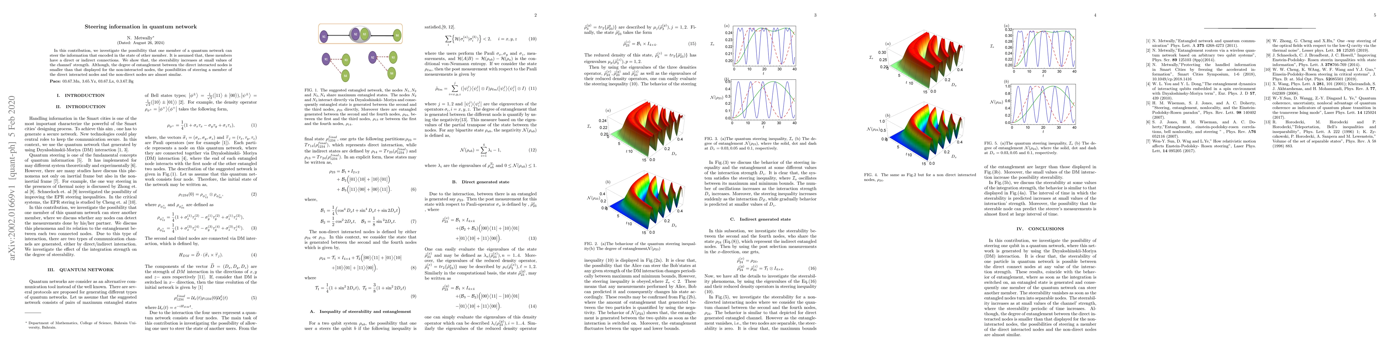 In this contribution, we investigate the possibility that one member of a quantum network can steer the information that encoded in the state of other member. It is assumed that, these members have a direct or indirect connections. We show that, the steerability increases at small values of the channel' strength. Although, the degree of entanglement between the direct interacted nodes is smaller than that displayed for the non-interacted nodes, the possibilities of steering a member of the direct interacted nodes and the non-direct nodes are almost similar.