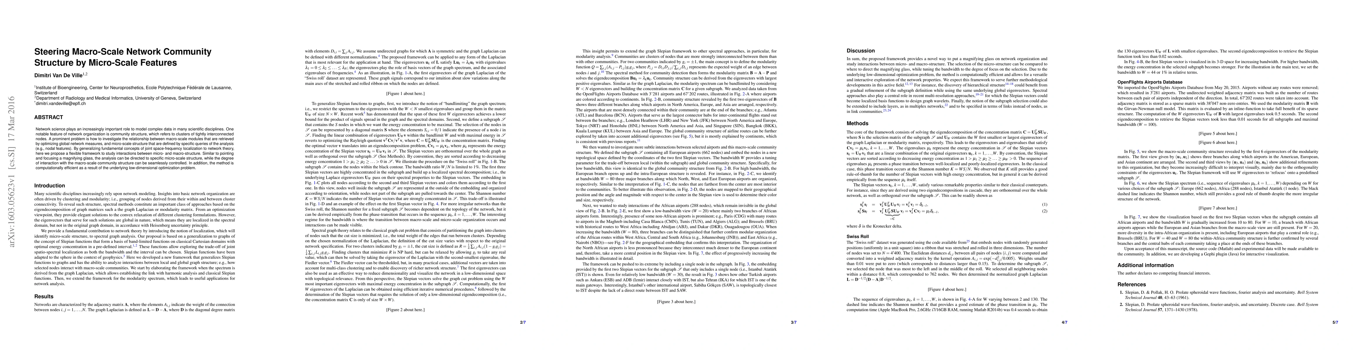 Network science plays an increasingly important role to model complex data in many scientific disciplines. One notable feature of network organization is community structure, which refers to clusters of tightly interconnected nodes. A prominent problem is how to investigate the relationship between macro-scale modules that are retrieved by optimizing global network measures, and micro-scale structure that are defined by specific queries of the analysis (e.g., nodal features). By generalizing fundamental concepts of joint space-frequency localization to network theory, here we propose a flexible framework to study interactions between micro- and macro-structure. Similar to pointing and focusing a magnifying glass, the analysis can be directed to specific micro-scale structure, while the degree of interaction with the macro-scale community structure can be seamlessly controlled. In addition, the method is computationally efficient as a result of the underlying low-dimensional optimization problem.