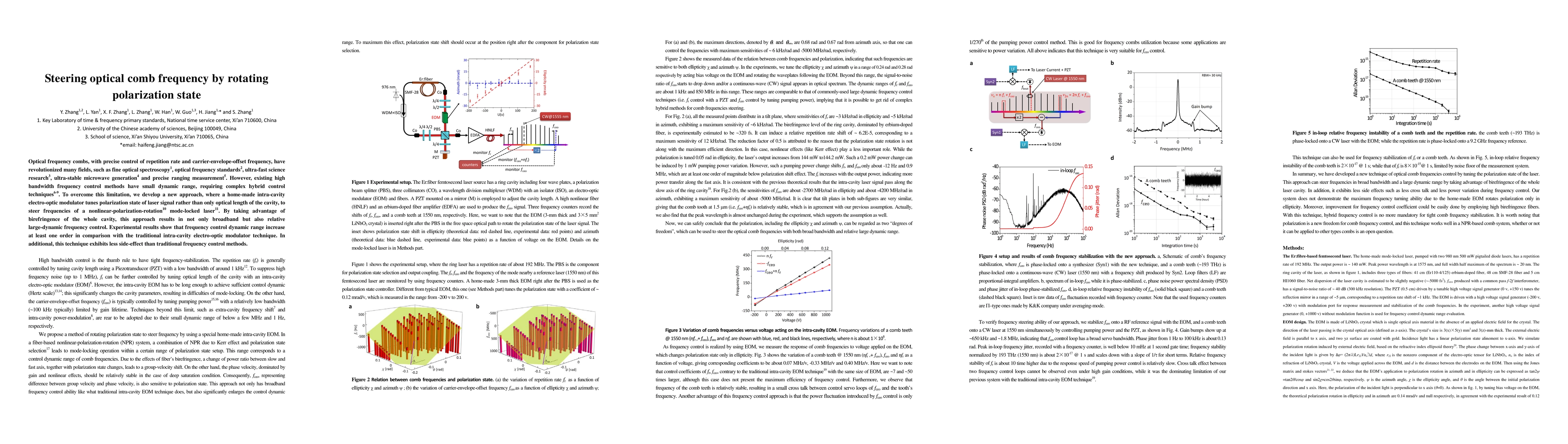 This paper introduces a novel method to control the frequency of optical combs by rotating the polarization state using an intra-cavity electro-optic modulator, achieving a significantly larger dynamic range and fewer side effects compared to traditional techniques.