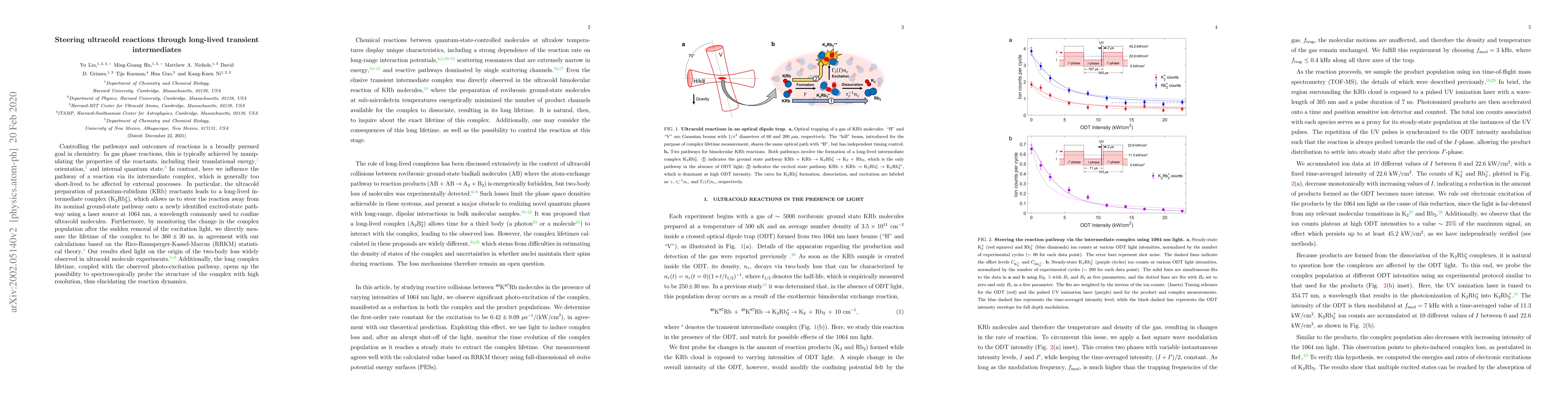 The study demonstrates that ultracold potassium-rubidium reactions can be directed along new pathways by manipulating long-lived intermediate complexes with laser light, revealing their lifetimes and enabling detailed spectroscopic analysis. This approach offers insights into reaction dynamics and two-body loss mechanisms in ultracold molecular systems.