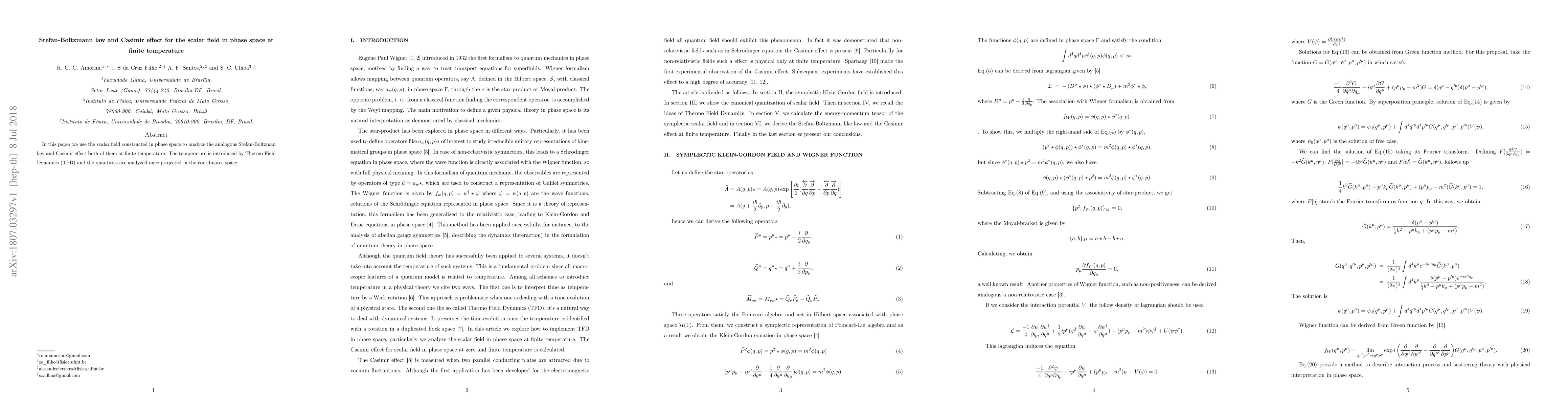 This paper examines the Stefan-Boltzmann law and Casimir effect for a scalar field in phase space at finite temperature, utilizing Thermo Field Dynamics (TFD) to introduce temperature and analyzing the results in coordinate space.