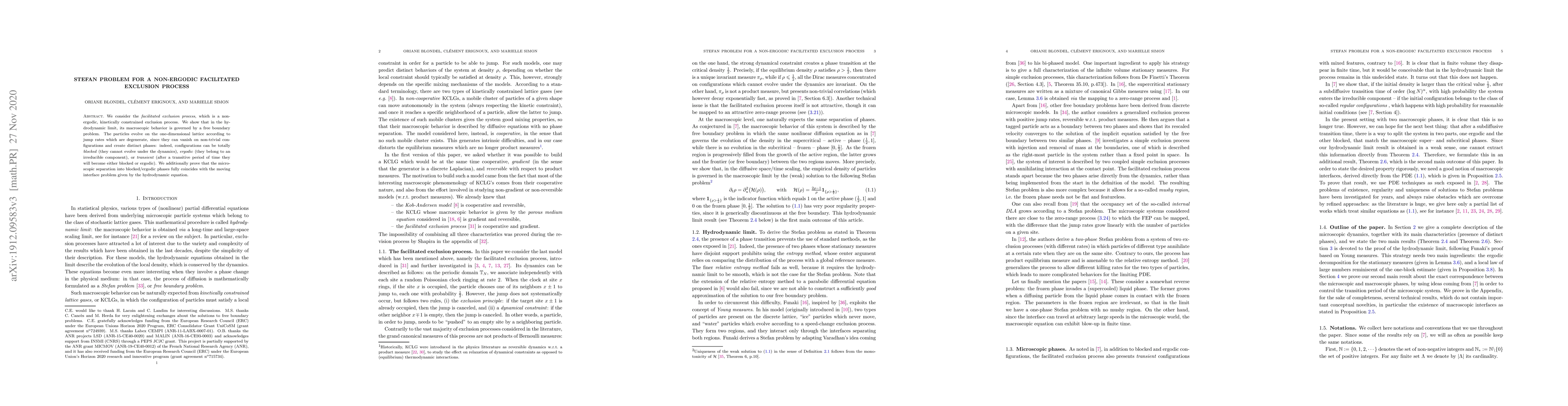 This paper studies the facilitated exclusion process, a kinetically constrained model, and demonstrates that its macroscopic behavior in the hydrodynamic limit is governed by a free boundary problem. The process exhibits distinct phases—blocked, ergodic, and transient—and the separation into these phases aligns with the moving interface problem described by the hydrodynamic equation.