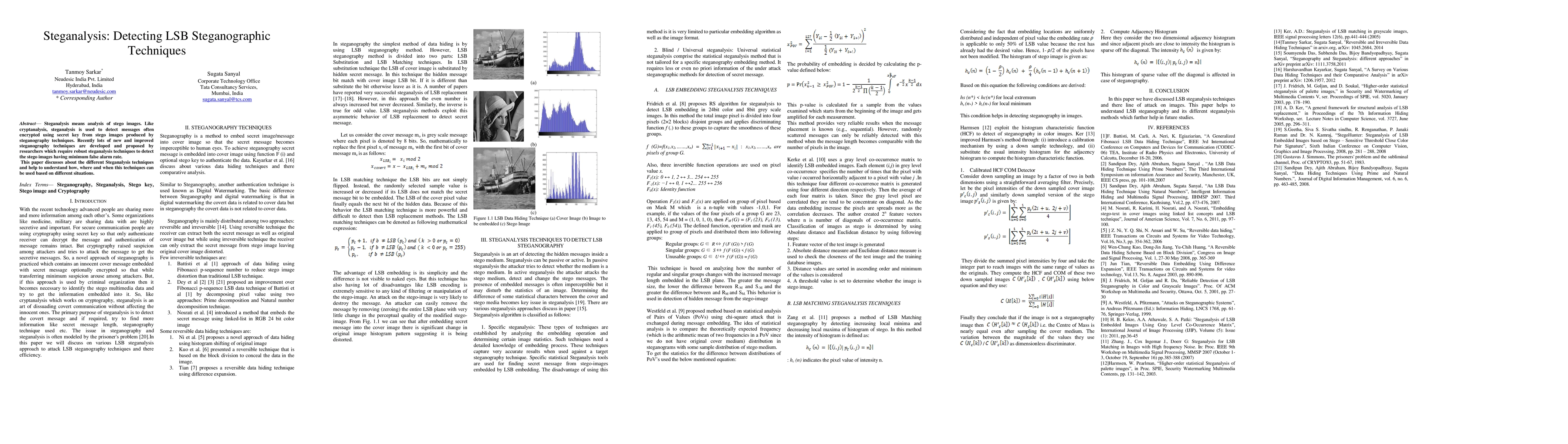This paper reviews various steganalysis techniques aimed at detecting stego images produced by least significant bit (LSB) steganography methods, emphasizing the need for robust detection methods to minimize false alarms and adapt to new steganographic advancements. It provides insights into the application contexts and effectiveness of different steganalysis approaches.