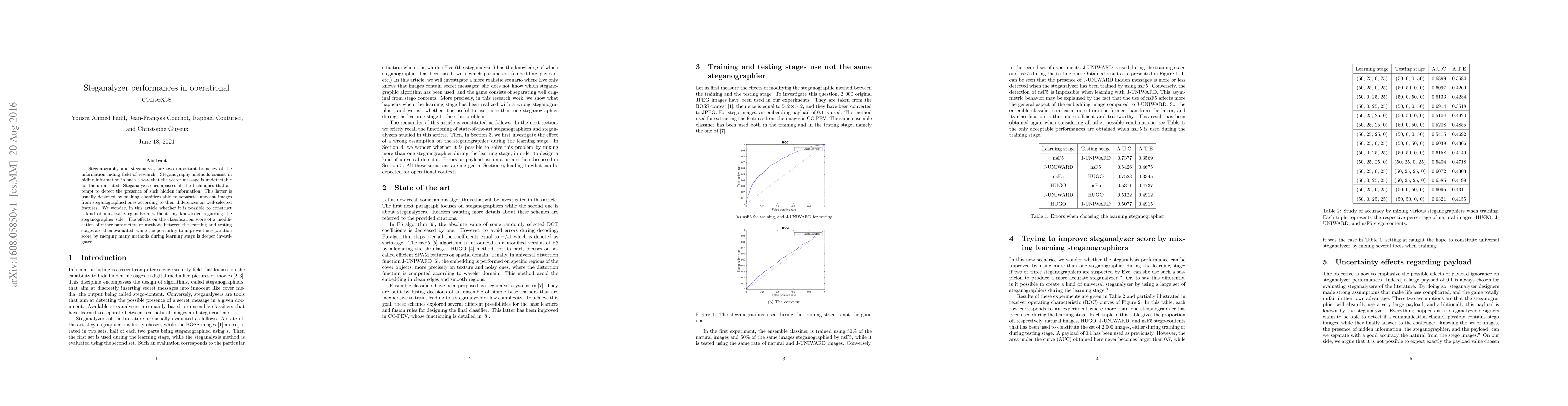 Steganography and steganalysis are two important branches of the information hiding field of research. Steganography methods consist in hiding information in such a way that the secret message is undetectable for the uninitiated. Steganalyzis encompasses all the techniques that attempt to detect the presence of such hidden information. This latter is usually designed by making classifiers able to separate innocent images from steganographied ones according to their differences on well-selected features. We wonder, in this article whether it is possible to construct a kind of universal steganalyzer without any knowledge regarding the steganographier side. The effects on the classification score of a modification of either parameters or methods between the learning and testing stages are then evaluated, while the possibility to improve the separation score by merging many methods during learning stage is deeper investigated.