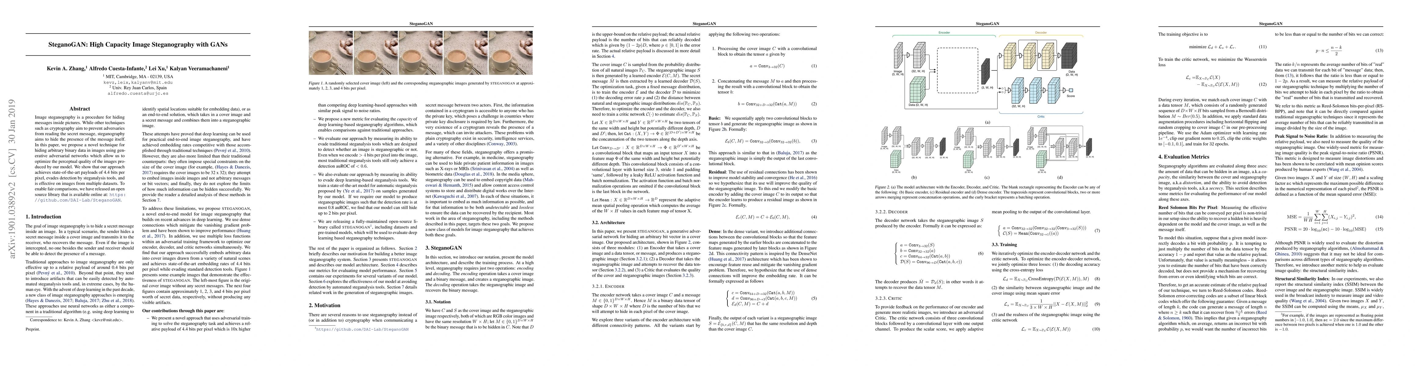 A new image steganography technique using Generative Adversarial Networks (GANs) achieves state-of-the-art payload capacity and evades detection by steganalysis tools.