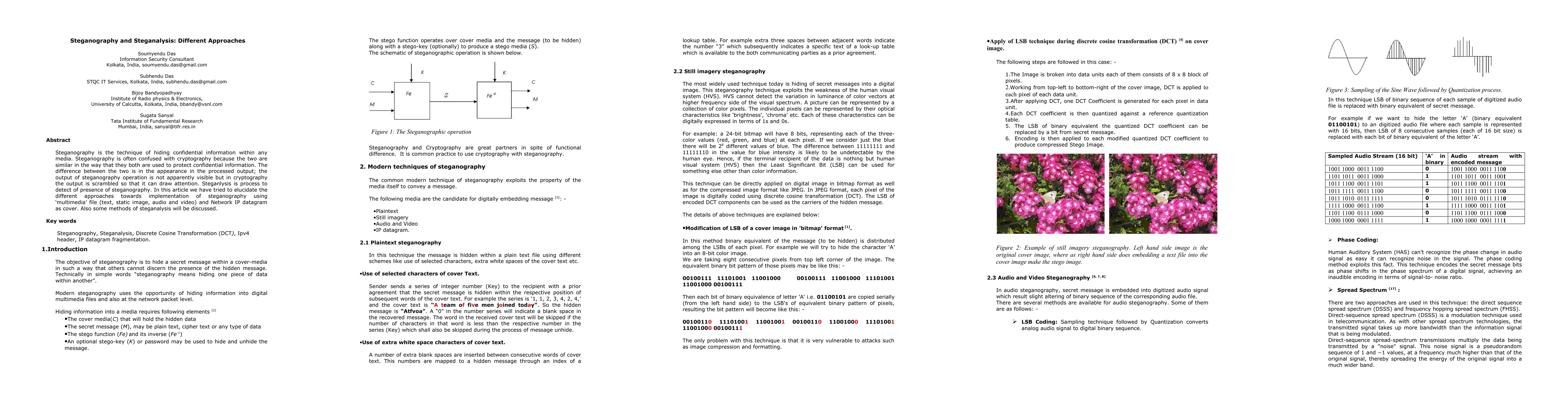 This paper explores various steganography techniques for embedding confidential information within multimedia files and network datagrams, contrasting them with cryptography. It also discusses methods for detecting steganography, known as steganalysis.