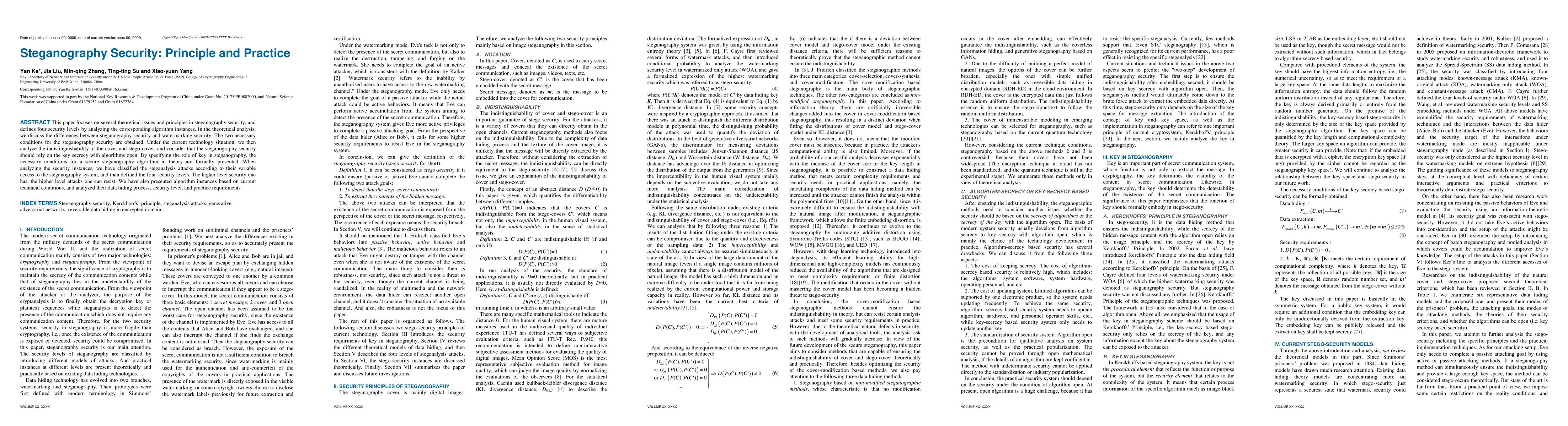 The paper presents a theoretical analysis of steganography security, defining four security levels based on algorithm instances and classifying steganalysis attacks according to the attacker's access to the steganography system.