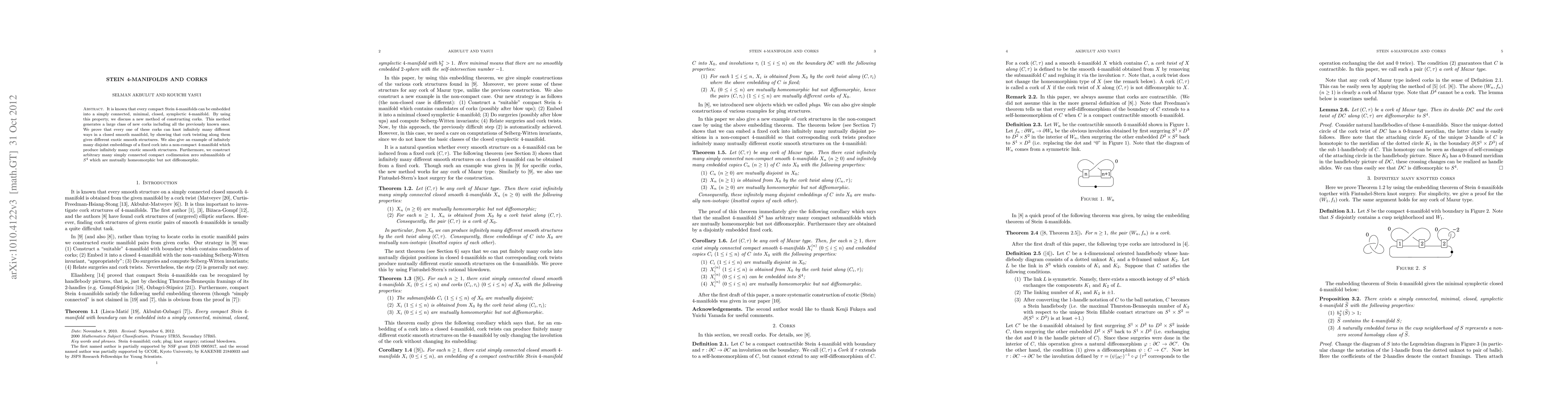 It is known that every compact Stein 4-manifolds can be embedded into a simply connected, minimal, closed, symplectic 4-manifold. By using this property, we discuss a new method of constructing corks. This method generates a large class of new corks including all the previously known ones. We prove that every one of these corks can knot infinitely many different ways in a closed smooth manifold, by showing that cork twisting along them gives different exotic smooth structures. We also give an example of infinitely many disjoint embeddings of a fixed cork into a non-compact 4-manifold which produce infinitely many exotic smooth structures. Furthermore, we construct arbitrary many simply connected compact codimension zero submanifolds of S^4 which are mutually homeomorphic but not diffeomorphic.