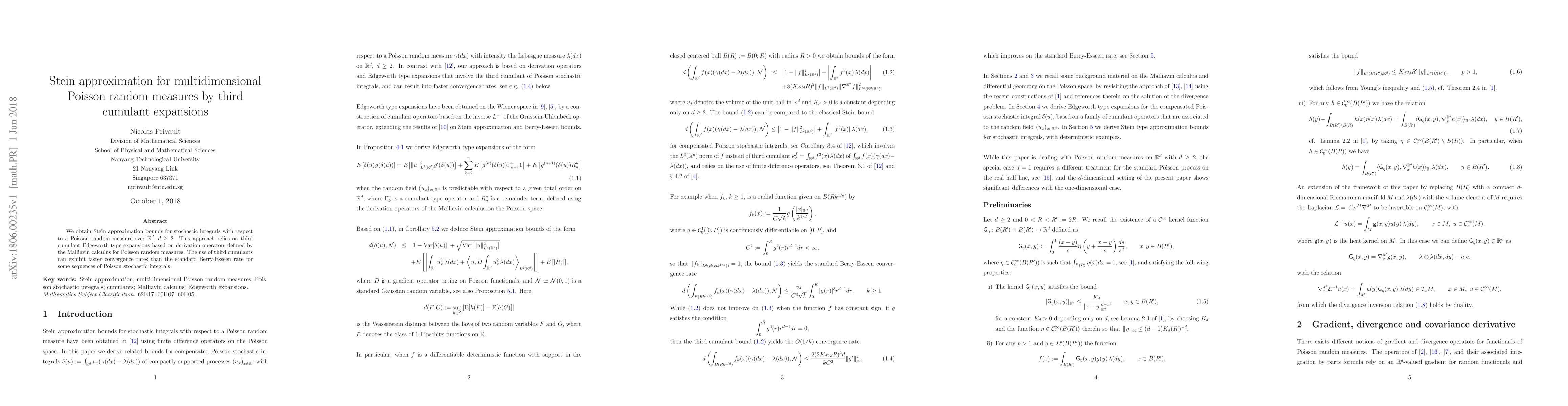 We obtain Stein approximation bounds for stochastic integrals with respect to a Poisson random measure over ${\Bbb R}^d$, $d\geq 2$. This approach relies on third cumulant Edgeworth-type expansions based on derivation operators defined by the Malliavin calculus for Poisson random measures. The use of third cumulants can exhibit faster convergence rates than the standard Berry-Esseen rate for some sequences of Poisson stochastic integrals.