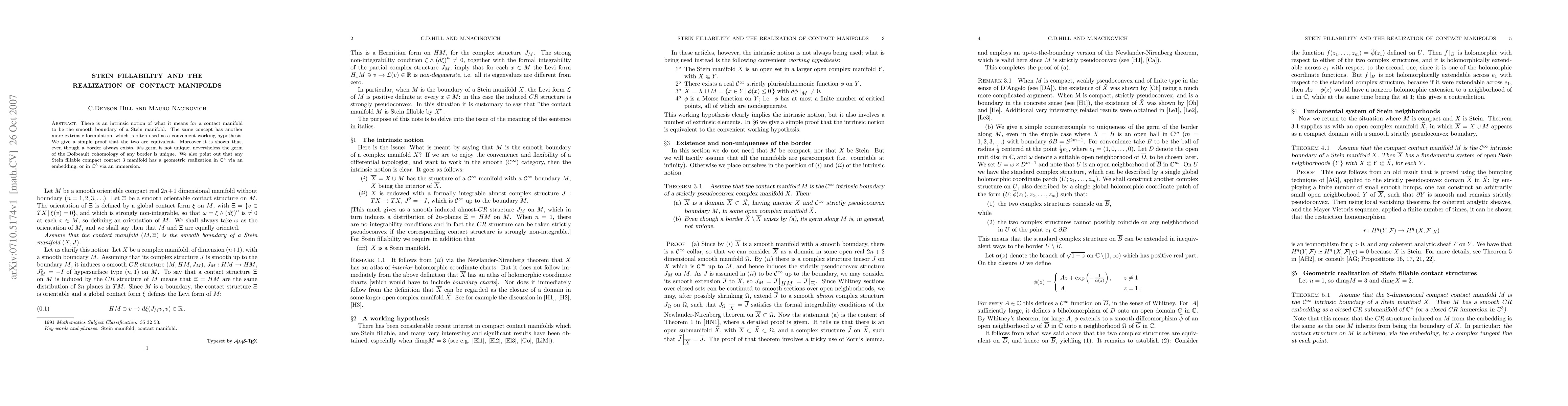 There is an intrinsic notion of what it means for a contact manifold to be the smooth boundary of a Stein manifold. The same concept has another more extrinsic formulation, which is often used as a convenient working hypothesis. We give a simple proof that the two are equivalent. Moreover it is shown that, even though a border always exists, it's germ is not unique; nevertheless the germ of the Dolbeault cohomology of any border is unique. We also point out that any Stein fillable compact contact 3- manifold has a geometric realization in C^4 via an embedding, or in C^3 via an immersion.