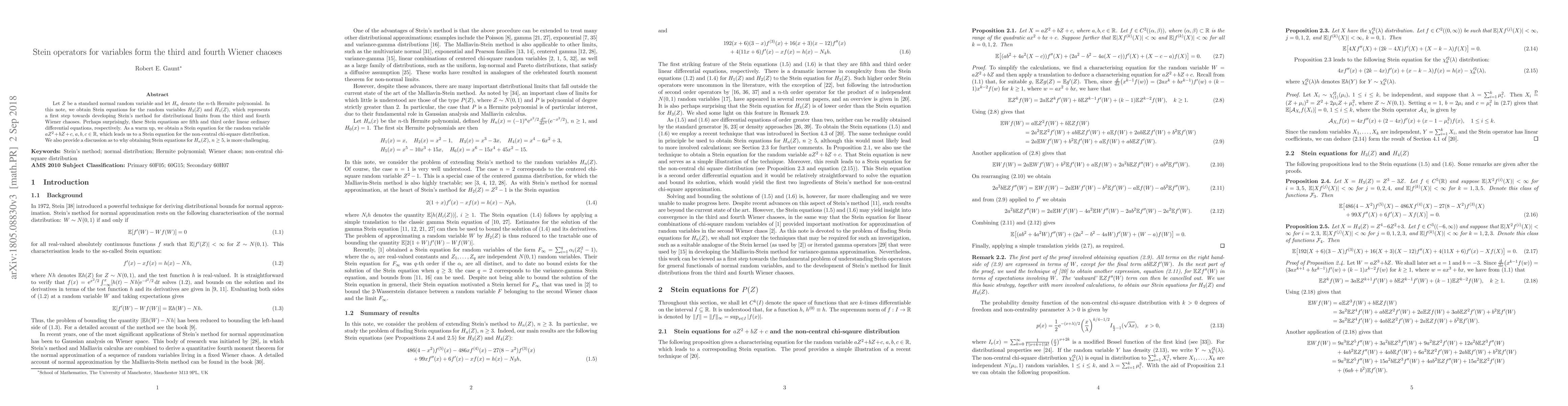 Let $Z$ be a standard normal random variable and let $H_n$ denote the $n$-th Hermite polynomial. In this note, we obtain Stein equations for the random variables $H_3(Z)$ and $H_4(Z)$, which represents a first step towards developing Stein's method for distributional limits from the third and fourth Wiener chaoses. Perhaps surprisingly, these Stein equations are fifth and third order linear ordinary differential equations, respectively. As a warm up, we obtain a Stein equation for the random variable $aZ^2+bZ+c$, $a,b,c\in\mathbb{R}$, which leads us to a Stein equation for the non-central chi-square distribution. We also provide a discussion as to why obtaining Stein equations for $H_n(Z)$, $n\geq5$, is more challenging.