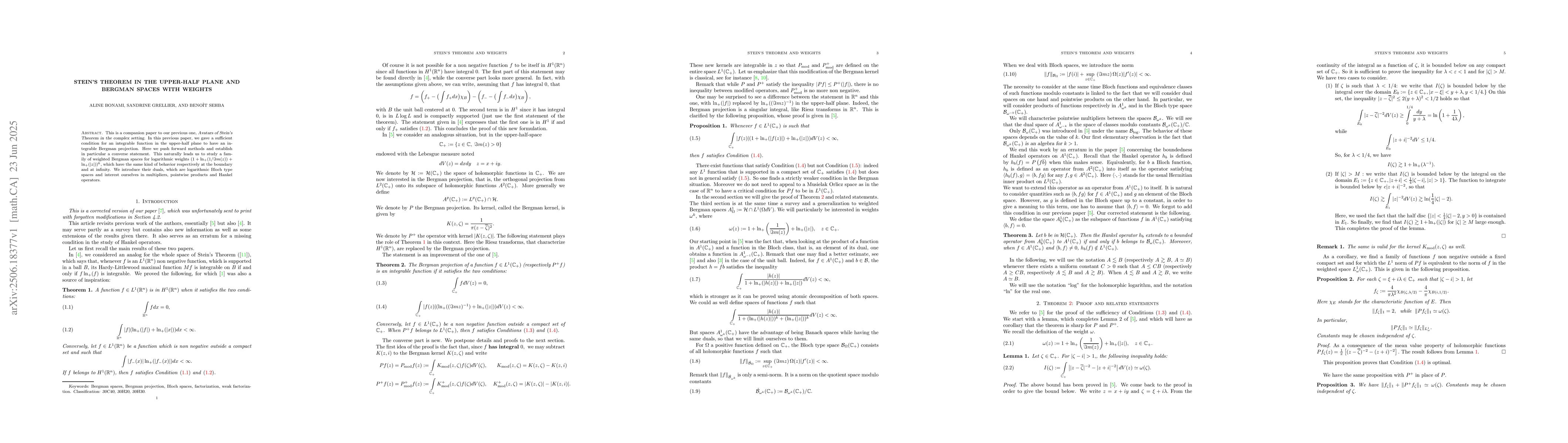 This is a companion paper to our previous one, Avatars of Stein's Theorem in the complex setting. In this previous paper, we gave a sufficient condition for an integrable function in the upper-half plane to have an integrable Bergman projection. Here we push forward methods and establish in particular a converse statement. This naturally leads us to study a family of weighted Bergman spaces for logarithmic weights (1 + ln + (1/___m(z)) + ln + (|z|)) k , which have the same kind of behavior respectively at the boundary and at infinity. We introduce their duals, which are logarithmic Bloch type spaces and interest ourselves in multipliers, pointwise products and Hankel operators.