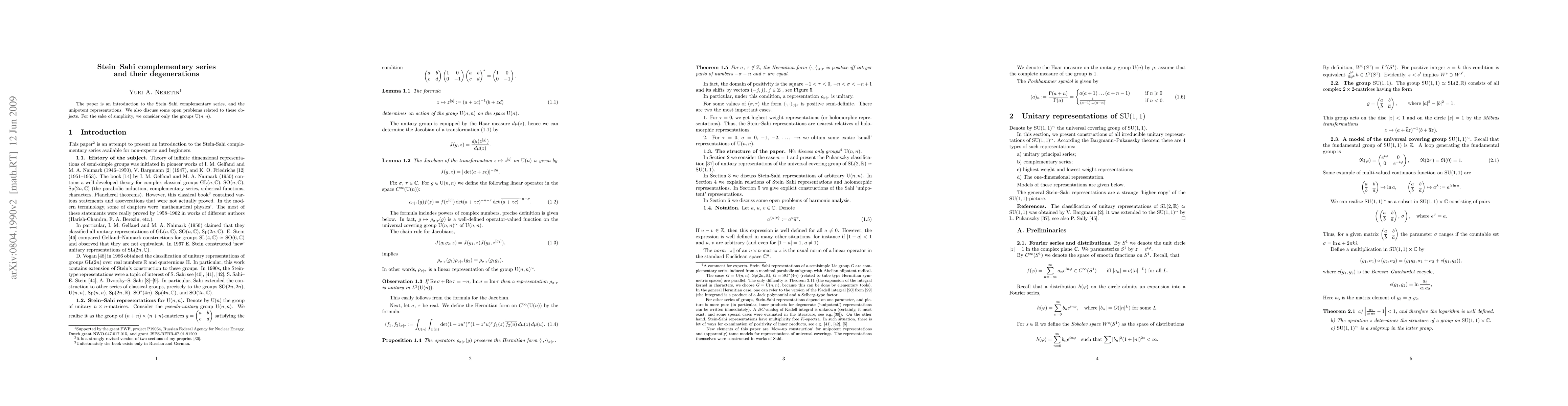 The aim of the paper is an introduction to Stein--Sahi complementary series, holomorphic series, and 'unipotent representations'. We also discuss some open problems related to these objects. For the sake of simplicity, we consider only the groups U(n,n).