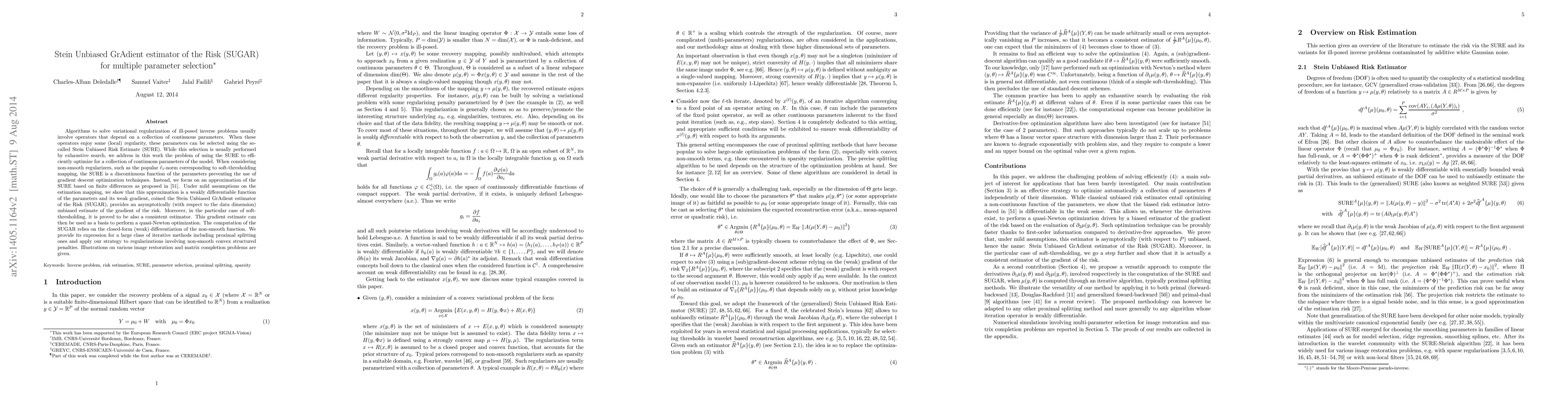 Algorithms to solve variational regularization of ill-posed inverse problems usually involve operators that depend on a collection of continuous parameters. When these operators enjoy some (local) regularity, these parameters can be selected using the so-called Stein Unbiased Risk Estimate (SURE). While this selection is usually performed by exhaustive search, we address in this work the problem of using the SURE to efficiently optimize for a collection of continuous parameters of the model. When considering non-smooth regularizers, such as the popular l1-norm corresponding to soft-thresholding mapping, the SURE is a discontinuous function of the parameters preventing the use of gradient descent optimization techniques. Instead, we focus on an approximation of the SURE based on finite differences as proposed in (Ramani et al., 2008). Under mild assumptions on the estimation mapping, we show that this approximation is a weakly differentiable function of the parameters and its weak gradient, coined the Stein Unbiased GrAdient estimator of the Risk (SUGAR), provides an asymptotically (with respect to the data dimension) unbiased estimate of the gradient of the risk. Moreover, in the particular case of soft-thresholding, it is proved to be also a consistent estimator. This gradient estimate can then be used as a basis to perform a quasi-Newton optimization. The computation of the SUGAR relies on the closed-form (weak) differentiation of the non-smooth function. We provide its expression for a large class of iterative methods including proximal splitting ones and apply our strategy to regularizations involving non-smooth convex structured penalties. Illustrations on various image restoration and matrix completion problems are given.