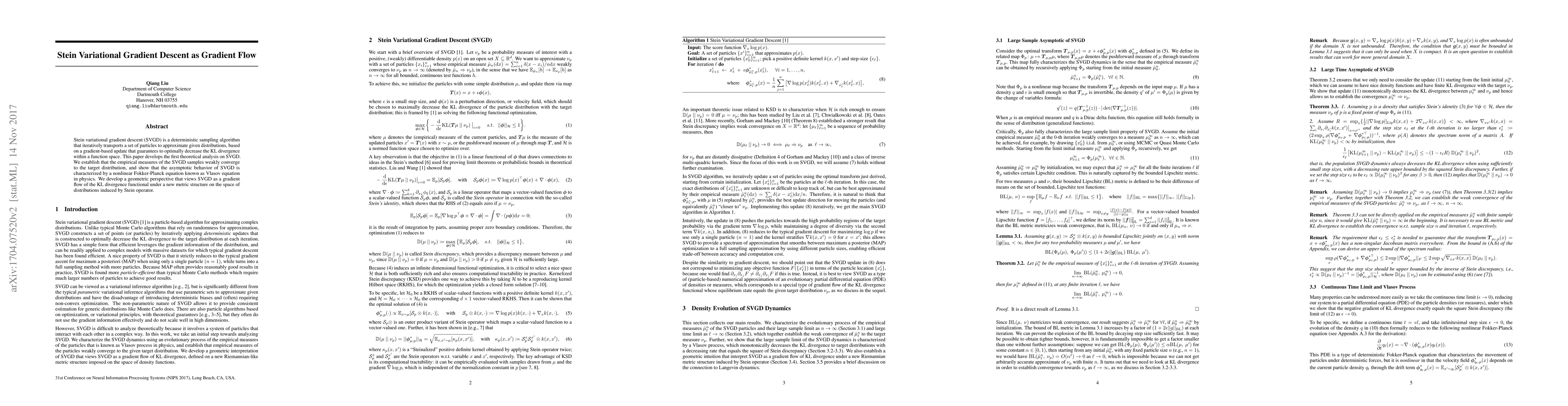 This paper provides the first theoretical analysis of Stein variational gradient descent (SVGD), demonstrating its weak convergence and showing that it approximates a gradient flow of the KL divergence functional under a new metric structure induced by the Stein operator. It also introduces results on Stein operator and Stein's identity, including a new proof of the distinguishability of Stein discrepancy.