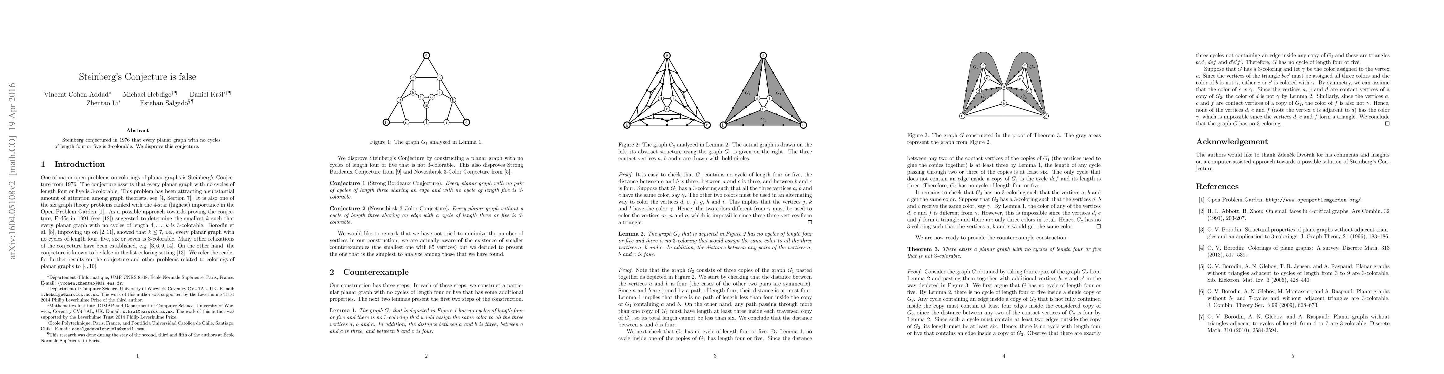 Steinberg conjectured in 1976 that every planar graph with no cycles of length four or five is 3-colorable. We disprove this conjecture.