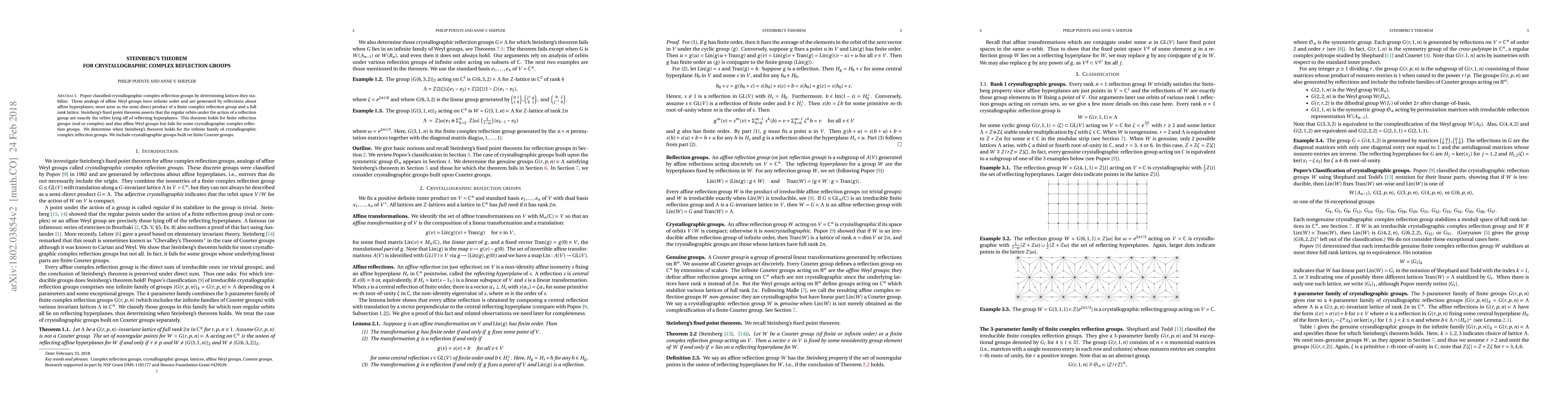 This paper investigates when Steinberg's fixed point theorem applies to crystallographic complex reflection groups, which are infinite-order groups generated by reflections. The study finds conditions under which the theorem holds, especially for groups that arise as semi-direct products involving finite complex reflection groups and lattices.