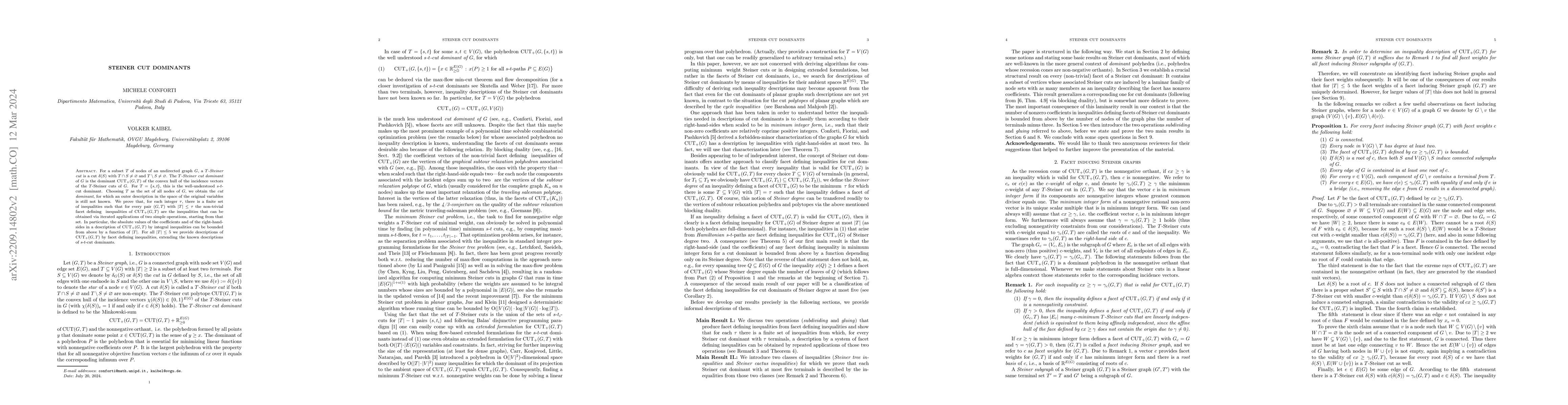 For a subset T of nodes of an undirected graph G, a T-Steiner cut is a cut \delta(S) where S intersects both T and the complement of T. The T-Steiner cut dominant} of G is the dominant CUT_+(G,T) of the convex hull of the incidence vectors of the T-Steiner cuts of G. For T={s,t}, this is the well-understood s-t-cut dominant. Choosing T as the set of all nodes of G, we obtain the \emph{cut dominant}, for which an outer description in the space of the original variables is still not known. We prove that, for each integer \tau, there is a finite set of inequalities such that for every pair (G,T) with |T|\ <= \tau the non-trivial facet-defining inequalities of CUT_+(G,T) are the inequalities that can be obtained via iterated applications of two simple operations, starting from that set. In particular, the absolute values of the coefficients and of the right-hand-sides in a description of CUT_+(G,T) by integral inequalities can be bounded from above by a function of |T|. For all |T| <= 5 we provide descriptions of CUT_+(G,T) by facet defining inequalities, extending the known descriptions of s-t-cut dominants.