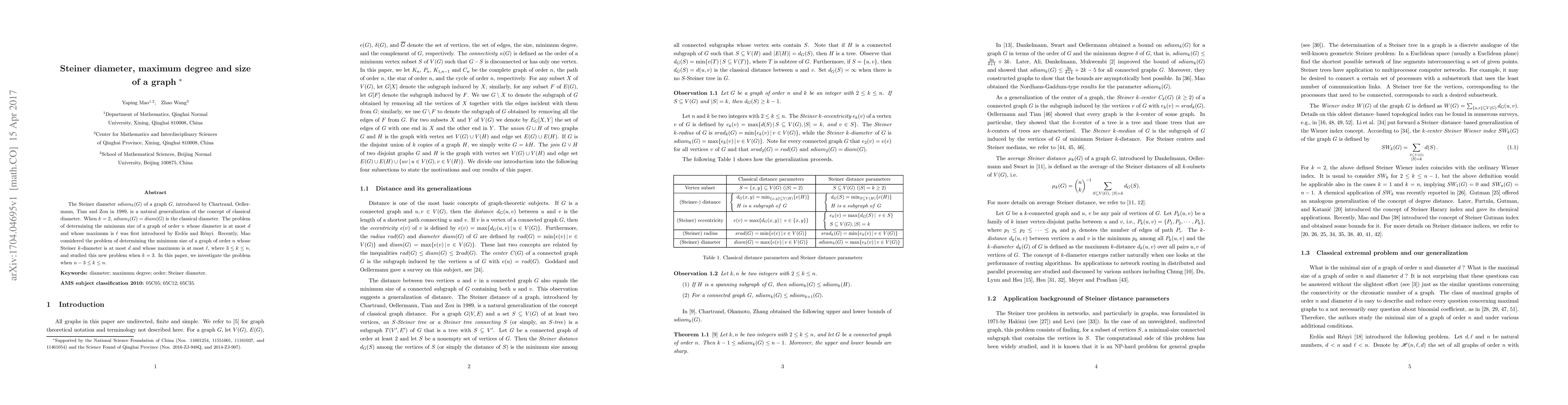 This paper investigates the minimum size of a graph with specific diameter and maximum degree constraints, focusing on Steiner k-diameter when 3 ≤ k ≤ n. It provides new insights into the problem by exploring the relationship between graph structure and these parameters.
