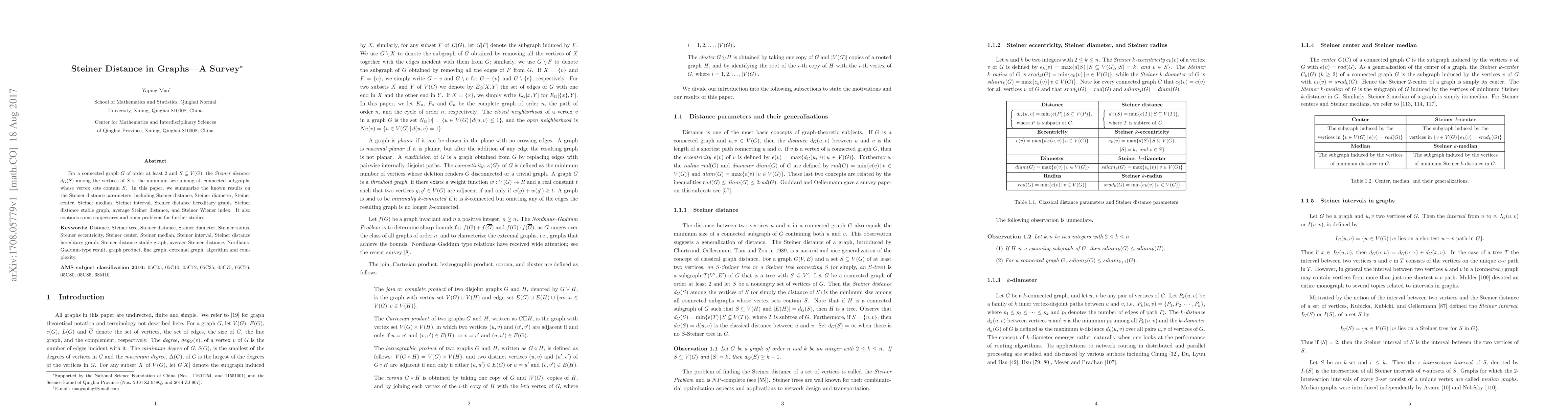 This paper surveys key concepts related to Steiner distance in graphs, including definitions, properties, and open problems. It provides an overview of various Steiner distance parameters and their relationships.